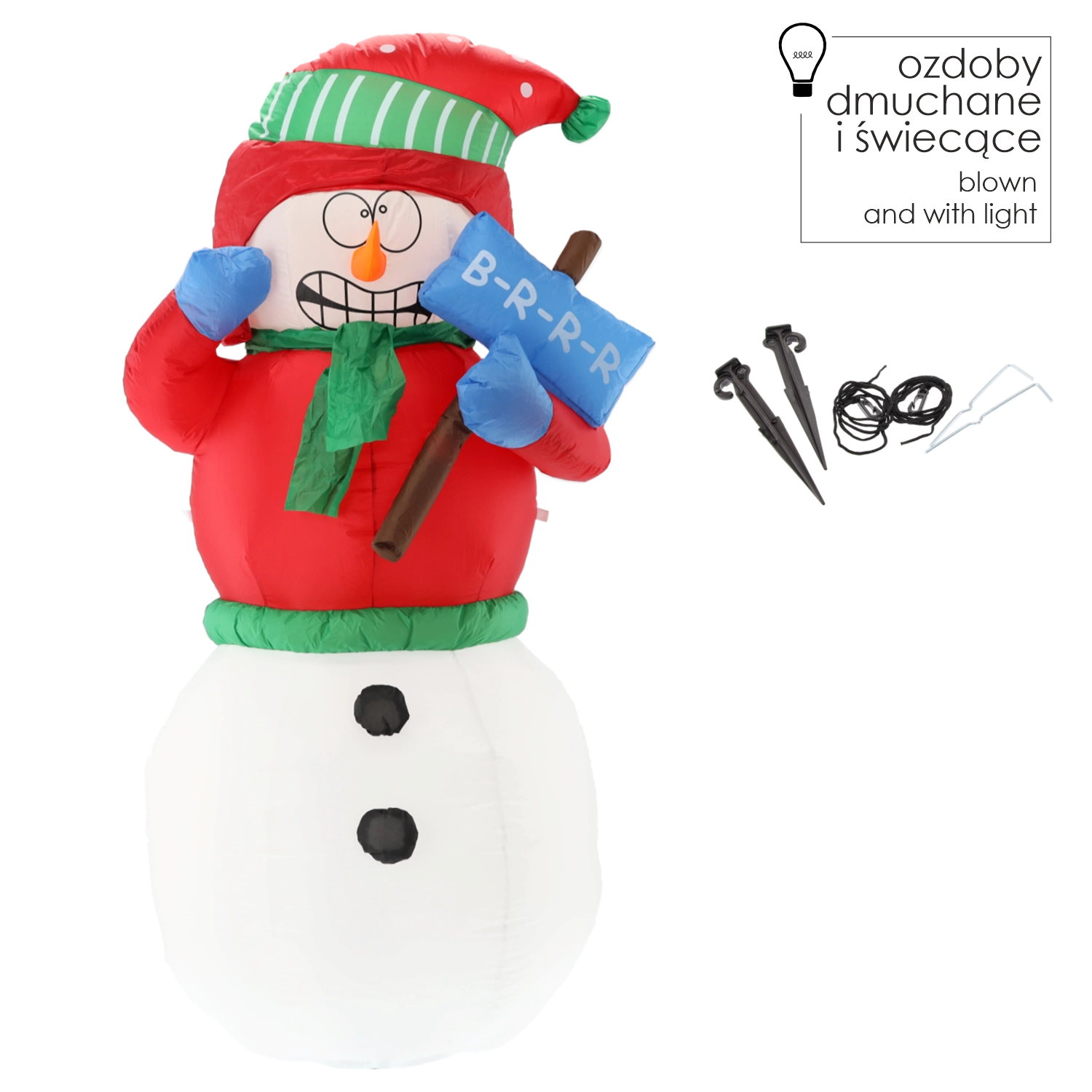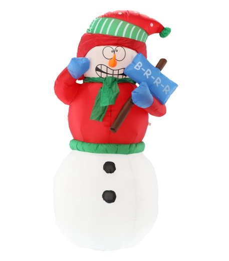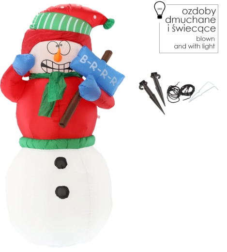 Tento veselý nafukovací sněhulák s červeným kabátkem, zelenou čepicí a šálou rozzáří každý exteriér i interiér. Integrované 2 bílé LED diody zajistí působivé nasvícení po setmění, zatímco robustní materiál a krytí IP44 garantují spolehlivý provoz venku během zimní sezóny.