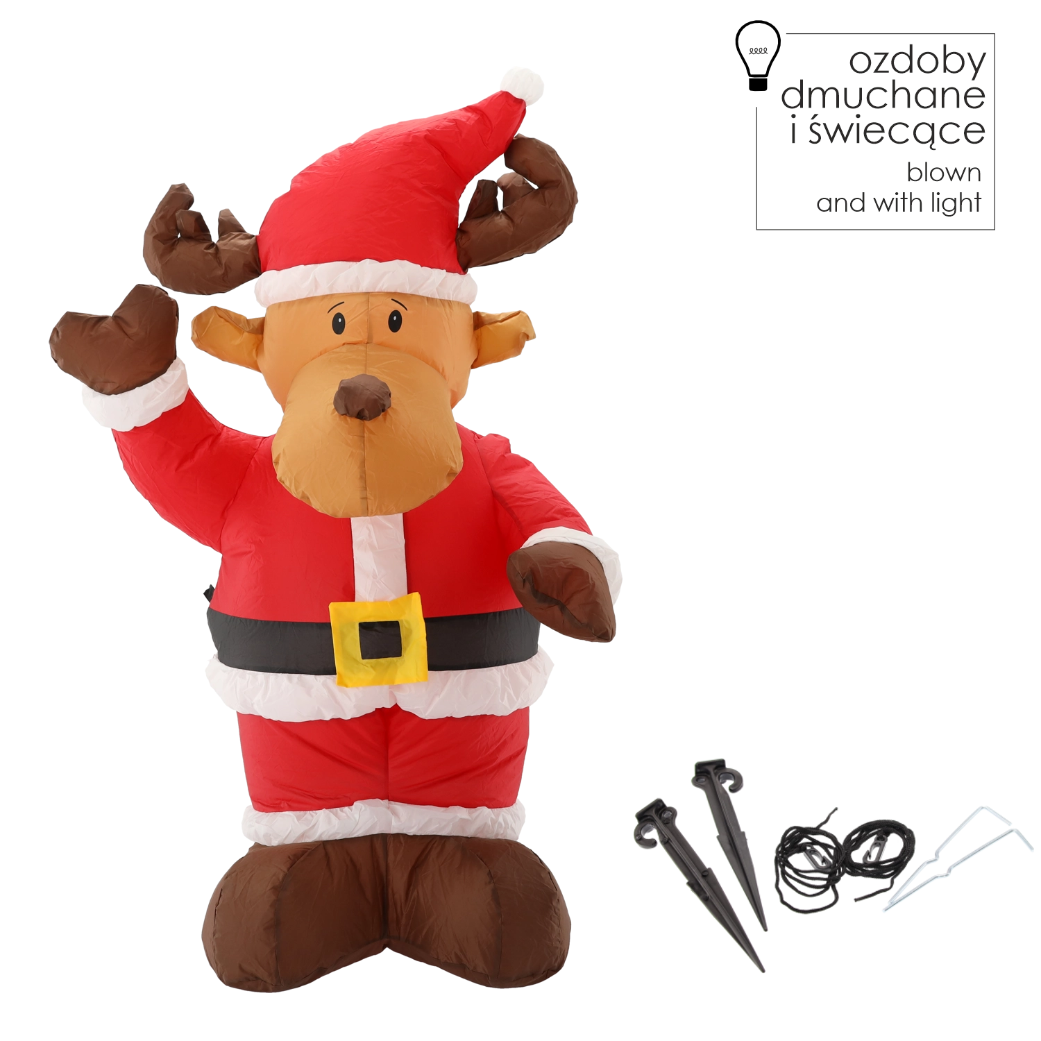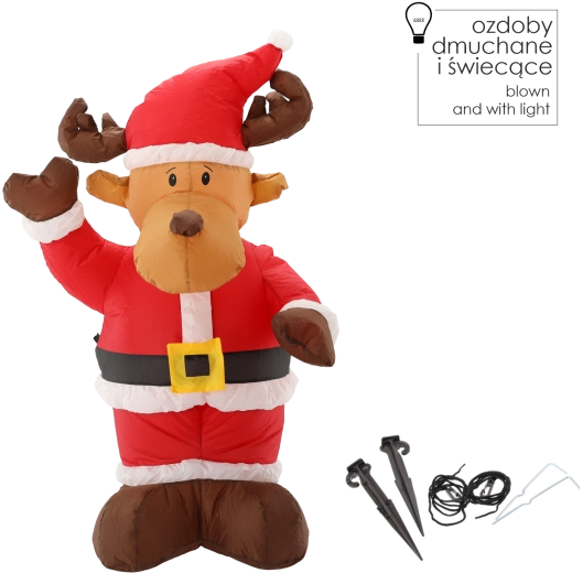 Tento nafukovací sob je perfektní vánoční dekorace pro předzahrádku, terasu i interiér. Veselý design v červenobílém Santově oblečku okamžitě navodí sváteční atmosféru a vestavěné LED světlo mu dodá působivý efekt po setmění.