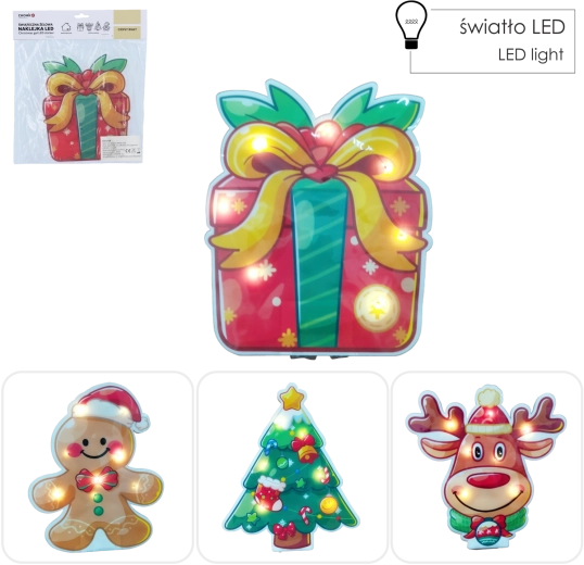 Rozzařte svůj domov kouzlem Vánoc díky dekorativní gelové samolepce s LED. Vyberte si motiv stromečku, dárku, soba nebo perníčka a vykouzlete příjemnou atmosféru teplým bílým světlem. Samolepka se snadno připevní na sklo, zrcadlo či nábytek, funguje na baterii a nevyžaduje žádné kabely. Rychlá výzdoba pro okna i dětský pokoj.