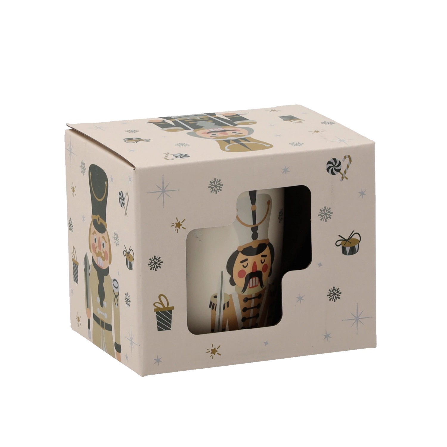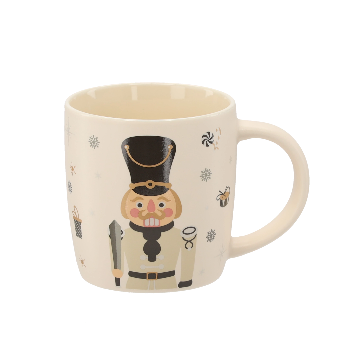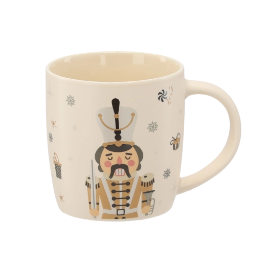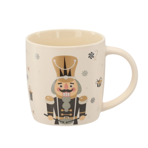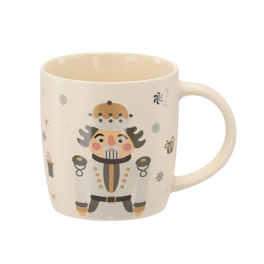Vneste do svého domova sváteční atmosféru s porcelánovým hrnkem o objemu 365 ml. Elegantní béžový základ doplňuje ilustrace louskáčka, vloček, dárků a cukrovinek. Kvalitní porcelán a hladká glazura zajišťují dlouhou životnost i snadnou údržbu.