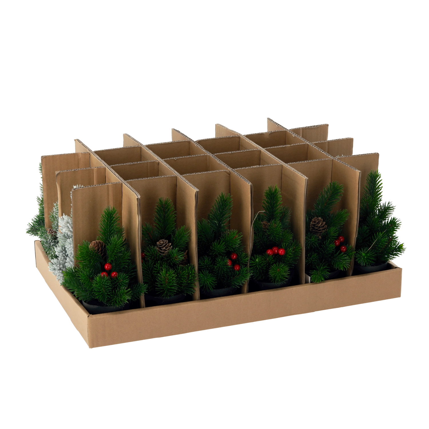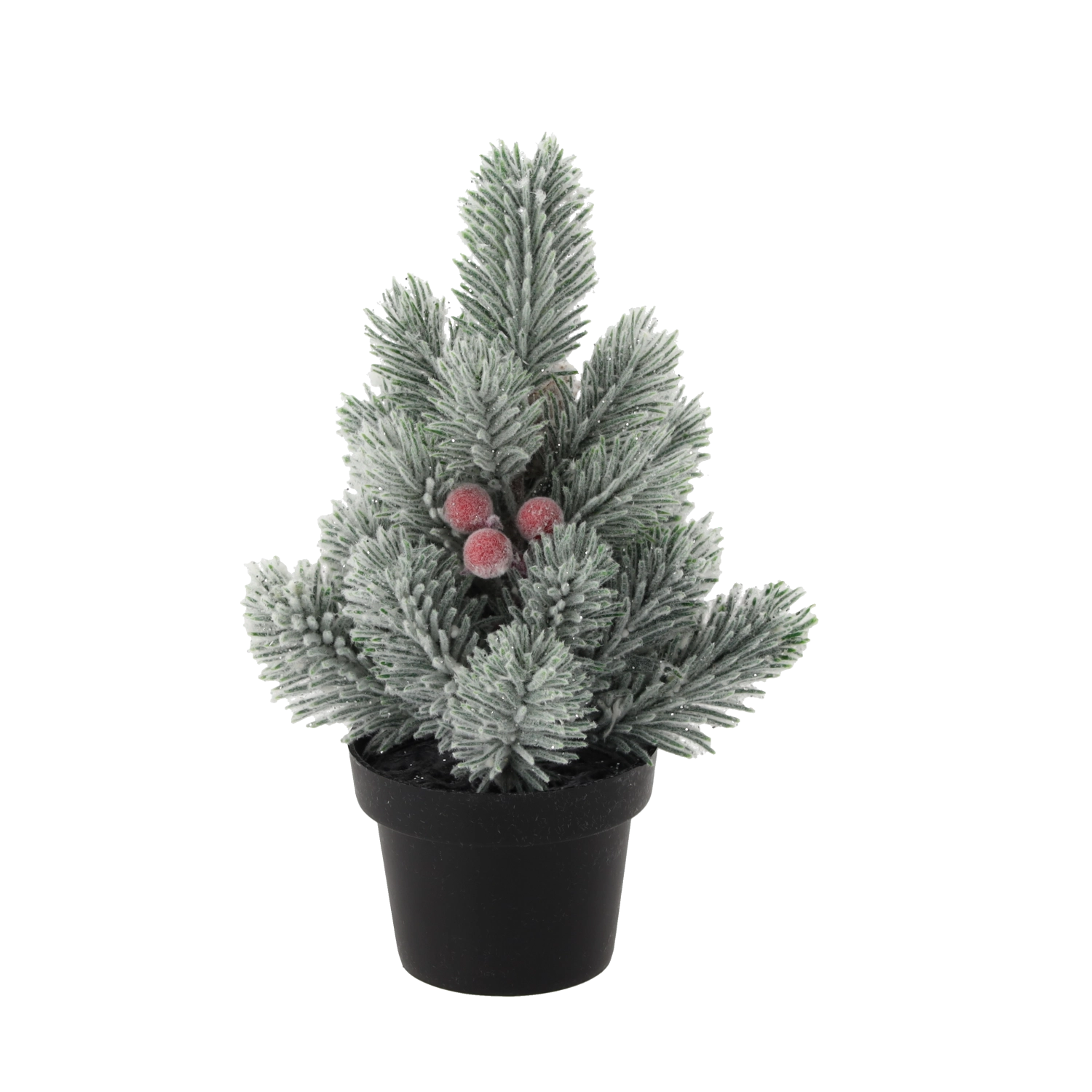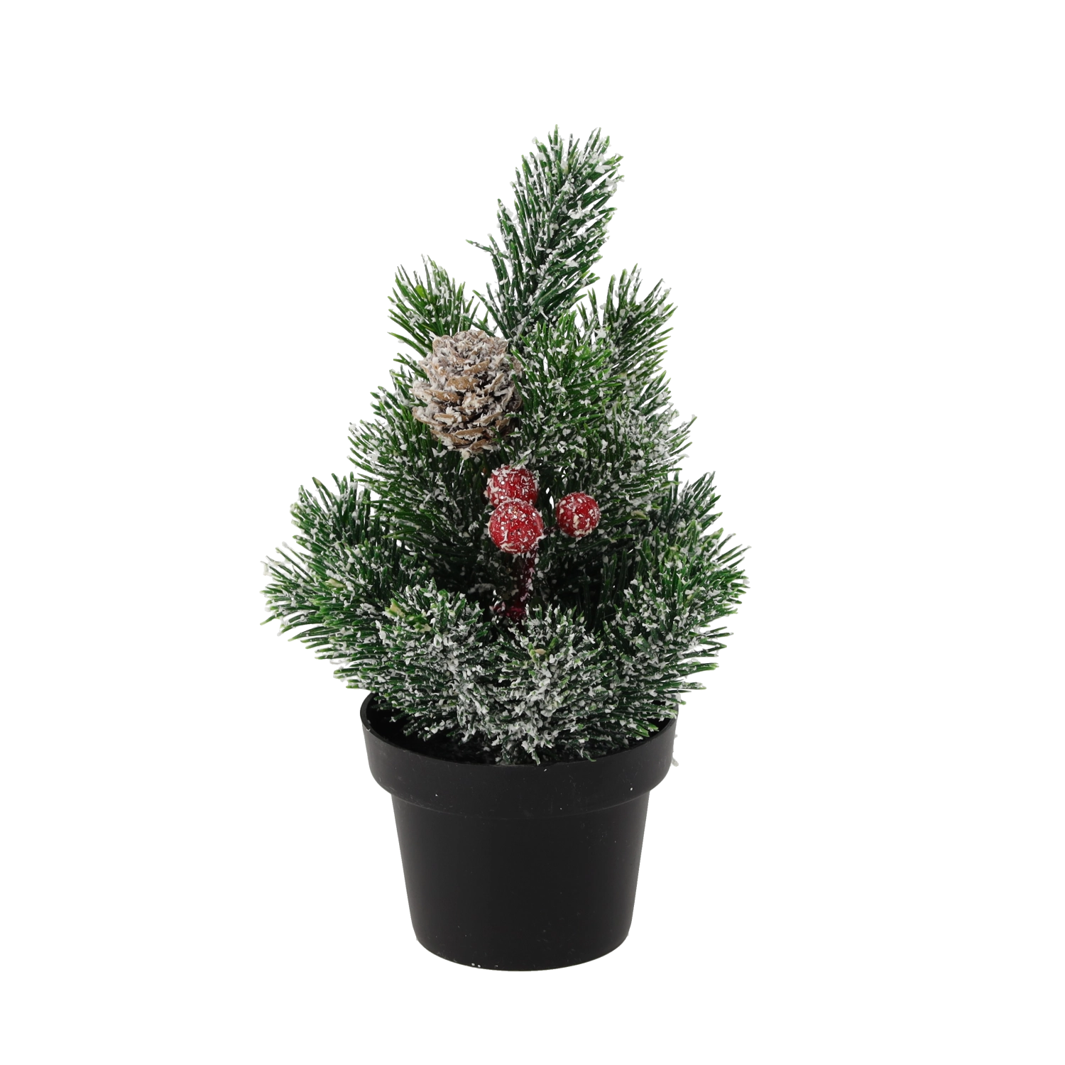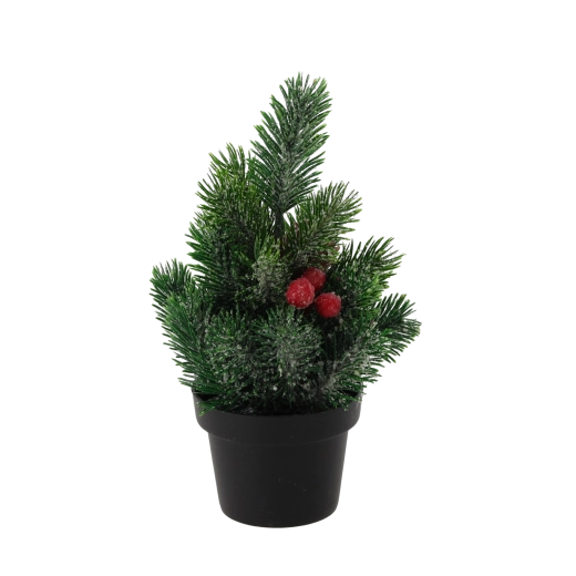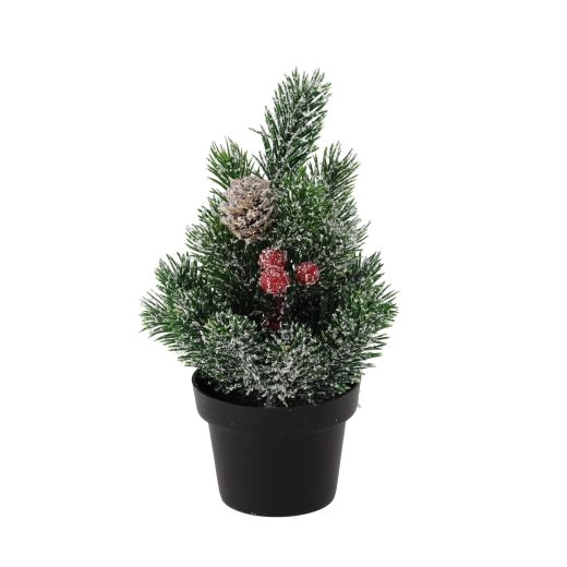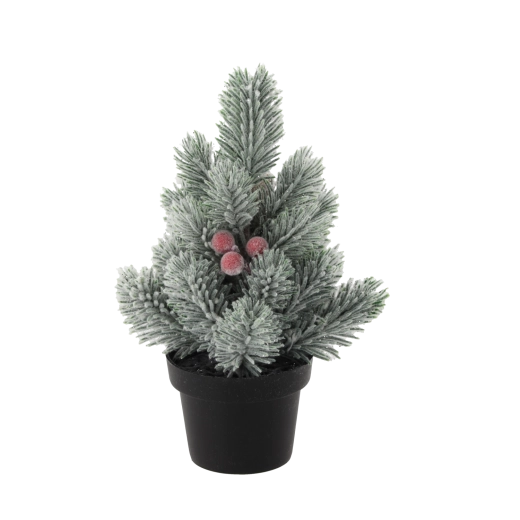 Tento stylový mini stromek přináší okamžitou sváteční atmosféru i do malých prostor. Realistické větvičky s jemným zasněžením a akcenty bobulí a šišek vytvářejí elegantní vzhled, který se hodí k modernímu i tradičnímu interiéru. Stabilní květináč zajistí snadné umístění na stůl, komodu či okenní parapet.