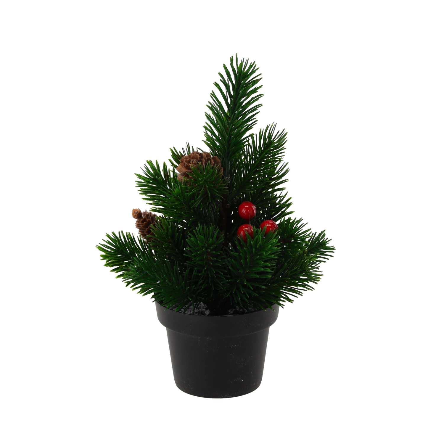 Zútulněte svůj domov během svátků s tímto mini vánočním stromkem v květináči o výšce 21 cm. Díky kompaktní velikosti je ideální na stůl, polici či recepci, má realistické jehličí, dekorativní červené bobule a šišky a je připraven k okamžitému vystavení bez údržby.