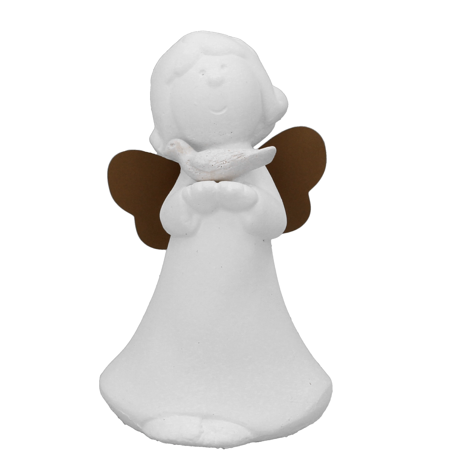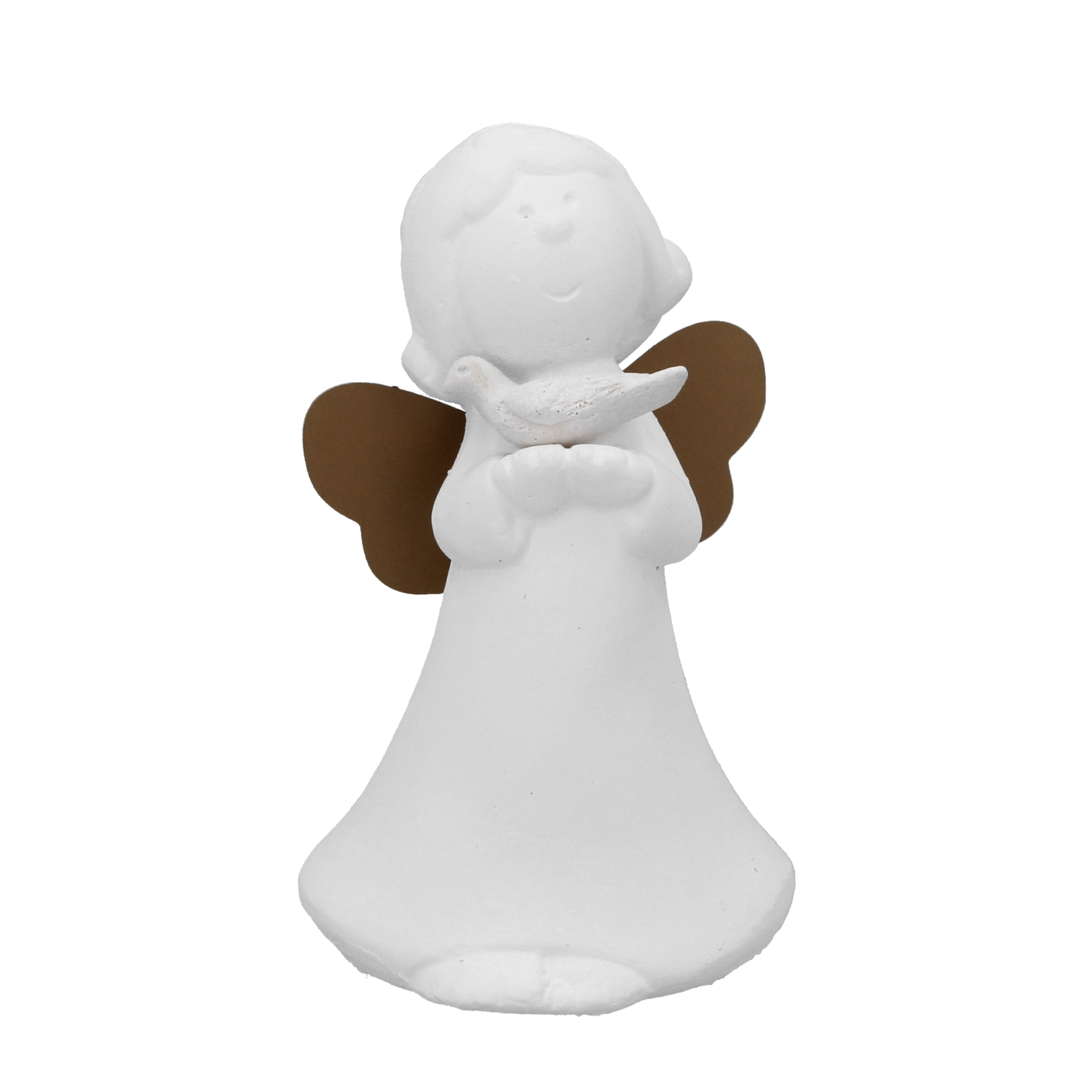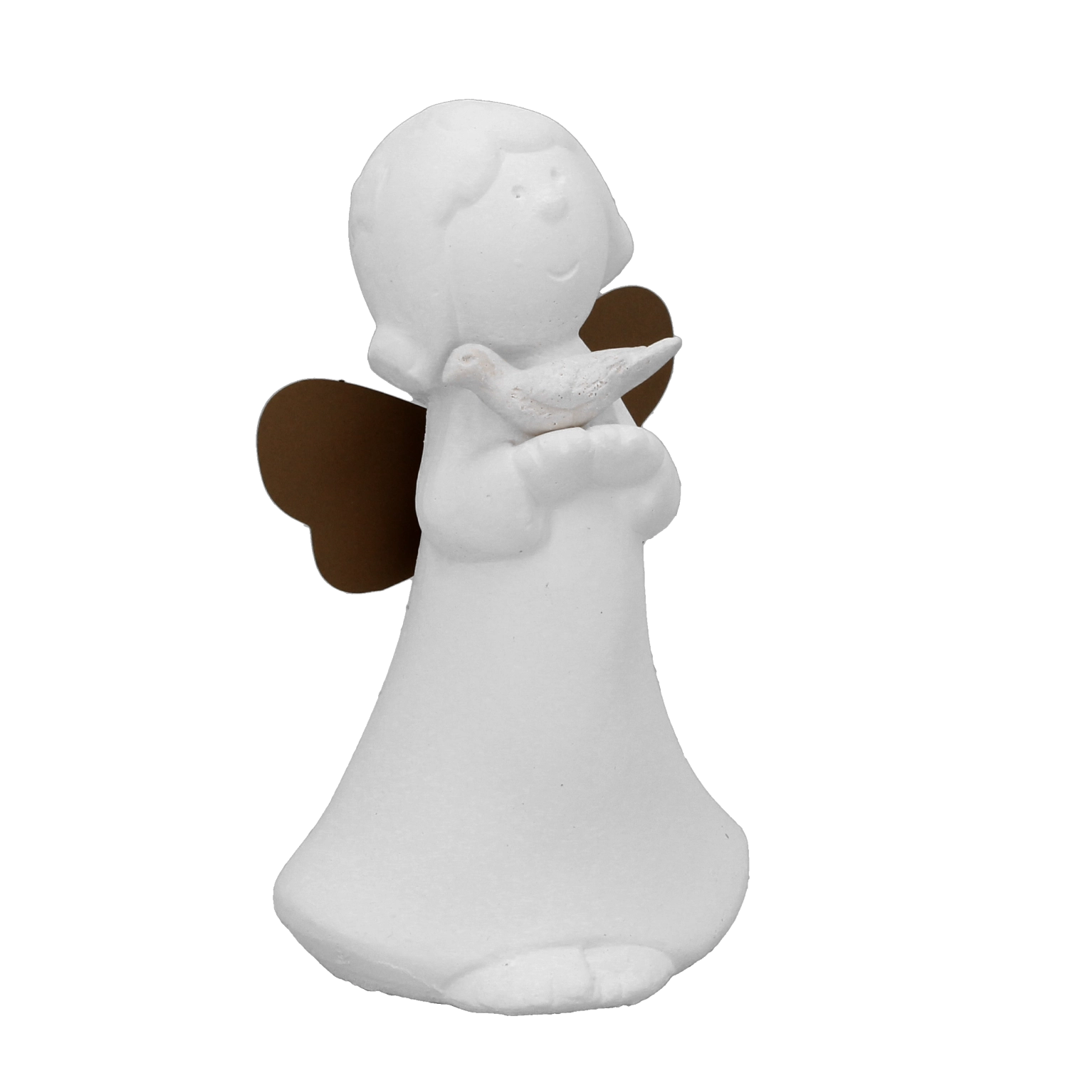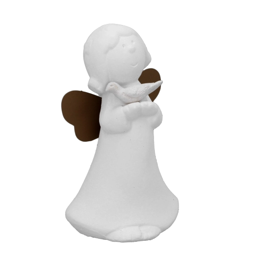 Tato decentní figurka anděla s holubicí symbolizuje klid, naději a ochranu. Minimalistický design v bílé barvě a hladký matný povrch z ní dělají nadčasový doplněk, který snadno sladíte s moderním i klasickým stylem bydlení. Díky kompaktní výšce 11 cm ji umístíte na poličku, pracovní stůl, parapet i sváteční tabuli.