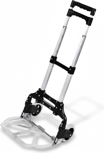 Lehký a odolný skládací hliníkový vozík s teleskopickou rukojetí ulehčí převoz krabic, zavazadel i nářadí. Díky kompaktním rozměrům se vejde do kufru auta, po složení zabere minimum místa a nosnost 70 kg spolehlivě pokryje většinu domácích i firemních úkolů. Součástí balení je elastický upínací popruh pro bezpečné zajištění nákladu.