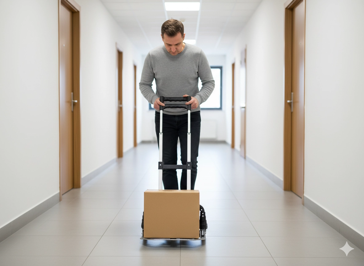 Díky kolům z PP + TPR je jízda tichá a šetrná k podlahám, zároveň si poradí s delšími přesuny ve skladu, kanceláři i doma. Kompaktní rozměry po složení oceníte při skladování v šatní skříni i při převážení v autě.