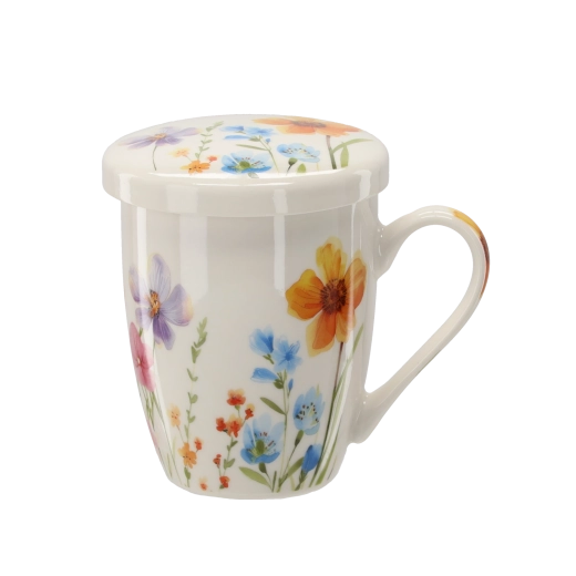 Barevné květinové motivy dodají šálku šarm a z něj činí ozdobu každé kuchyně i skvělý dárek pro milovníky čaje.