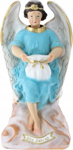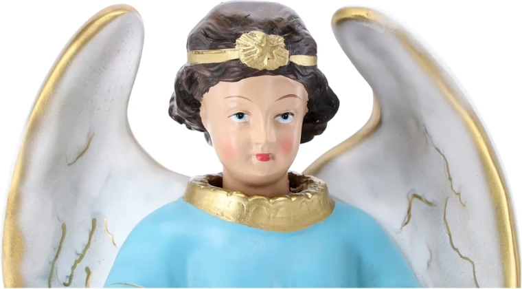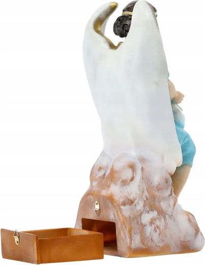 Elegantní soška anděla s jemnými bílými křídly a světle modrým šatem spojuje dekorativní krásu a praktickou funkci pokladničky. Pečlivě malované detaily, zlaté akcenty a odolný polyresin z ní dělají ideální dekoraci do bytu, kapličky i na sváteční stůl či smysluplný dárek.