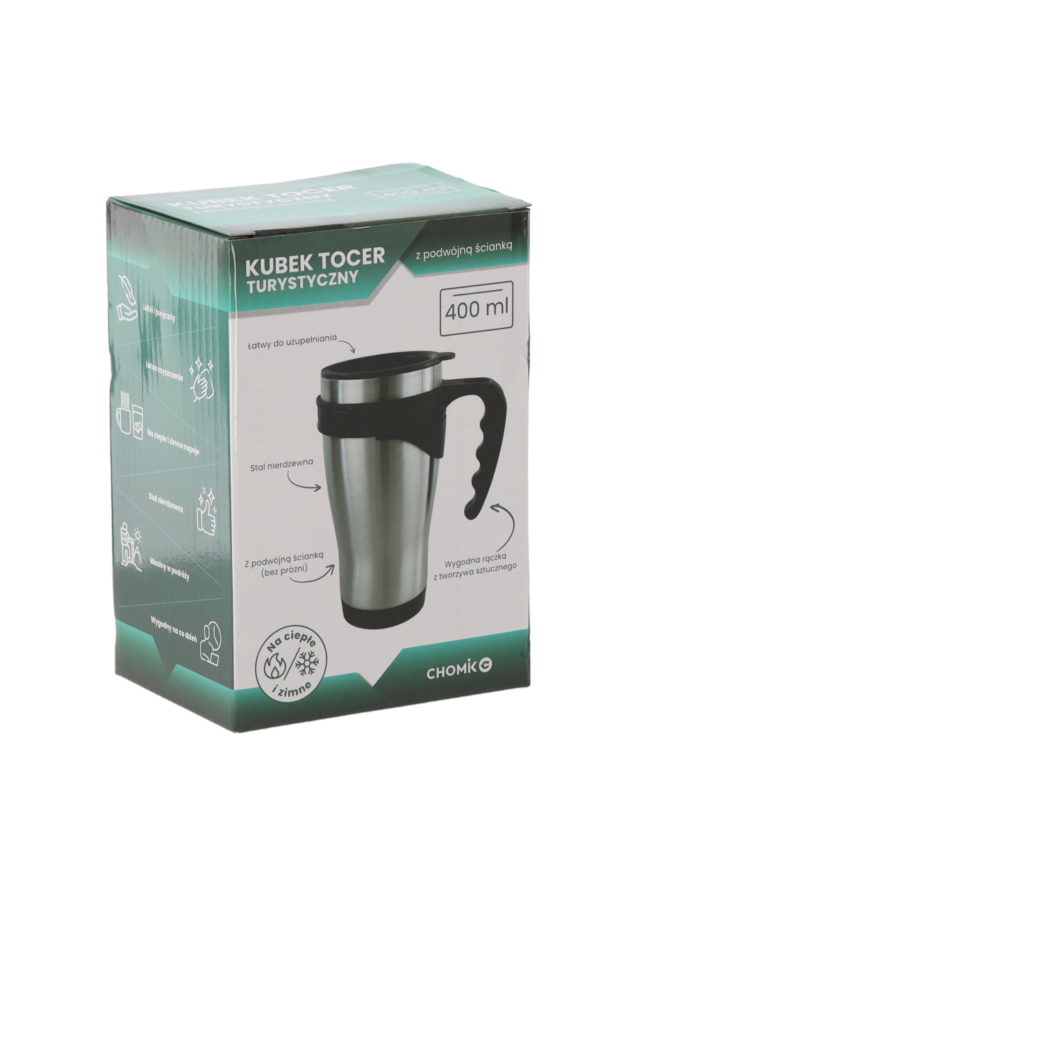 Užijte si kávu nebo čaj na cestách s cestovním termohrnkem TOCER o objemu 400 ml. Dvojité nerezové stěny zvyšují tepelnou izolaci, zatímco pevné plastové víčko pomáhá omezit rozlití. Ergonomické ucho usnadňuje manipulaci a pití i během chůze nebo dojíždění.