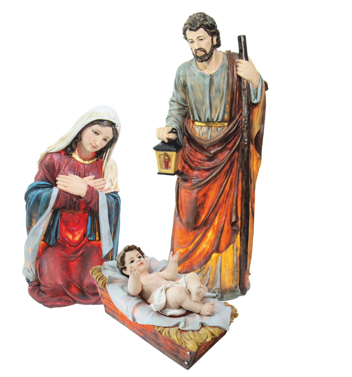 Sada obsahuje tři nejdůležitější postavy betléma – sv. Josefa, Pannu Marii a Dítě Ježíše. Každá figurka vyniká realistickým provedením, pečlivým ručním malováním a diskrétním LED osvětlením, které zvýrazní tvary a barvy bez oslňování.