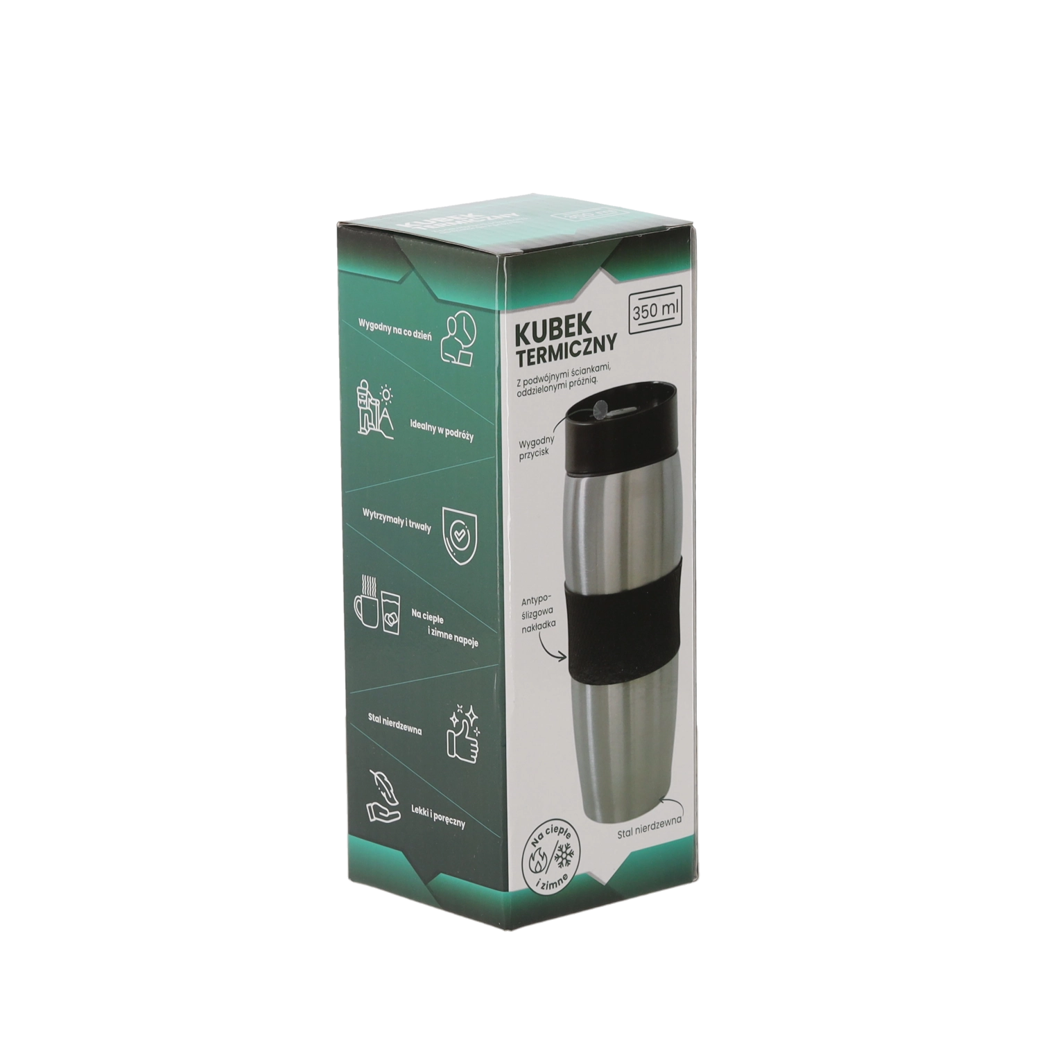 Užijte si svůj oblíbený nápoj kdekoli a kdykoli. Tento nerezový termohrnek s objemem 350 ml je navržen pro každodenní použití na cestách – do auta, do kanceláře i na výlety. Díky dvoustěnným nerezovým stěnám udrží nápoje déle horké i studené a zároveň je odolný vůči nárazům a snadno se čistí.