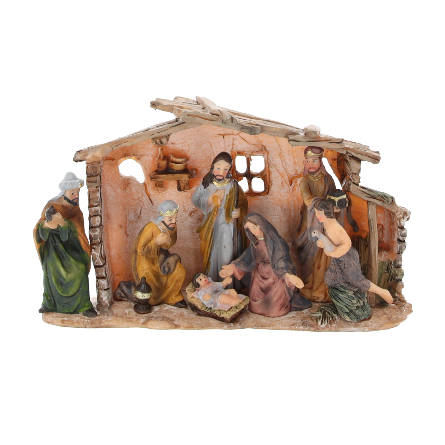 Přineste si domů kouzlo Vánoc s elegantním betlémem, který zobrazuje Svatou rodinu, pastýře a Tři krále pod rustikálním chlévem. Figurky jsou detailně zpracované a ručně malované pro jedinečný vzhled. Kompaktní rozměry dělají z této dekorace ideální vánoční ozdobu na komodu, polici či krbovou římsu. Odolná polyresinová pryskyřice zajistí dlouhou životnost a krásný vzhled rok co rok.