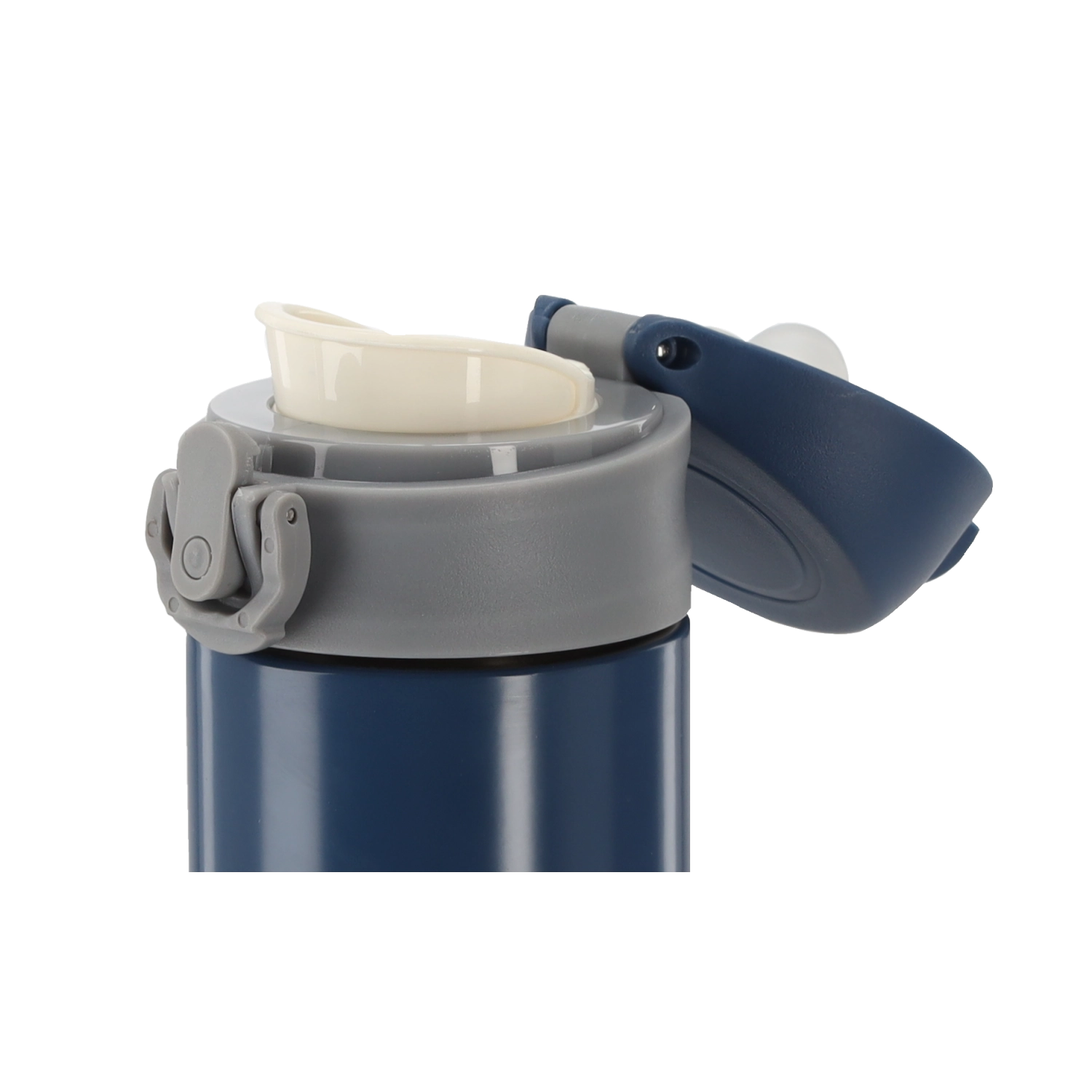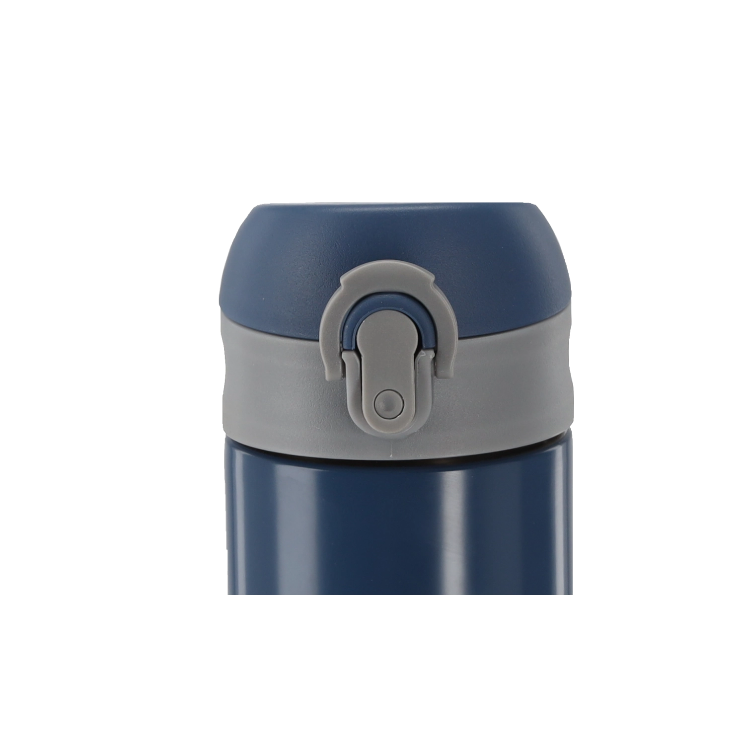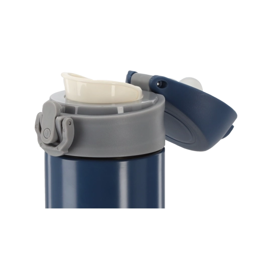 Víčko typu push z odolného PP plastu umožňuje pohodlné ovládání jednou rukou a omezuje rozlití během chůze nebo jízdy. Díky štíhlému tvaru (Ø 6,5 cm) pasuje do většiny držáků nápojů v autě i v batohu.