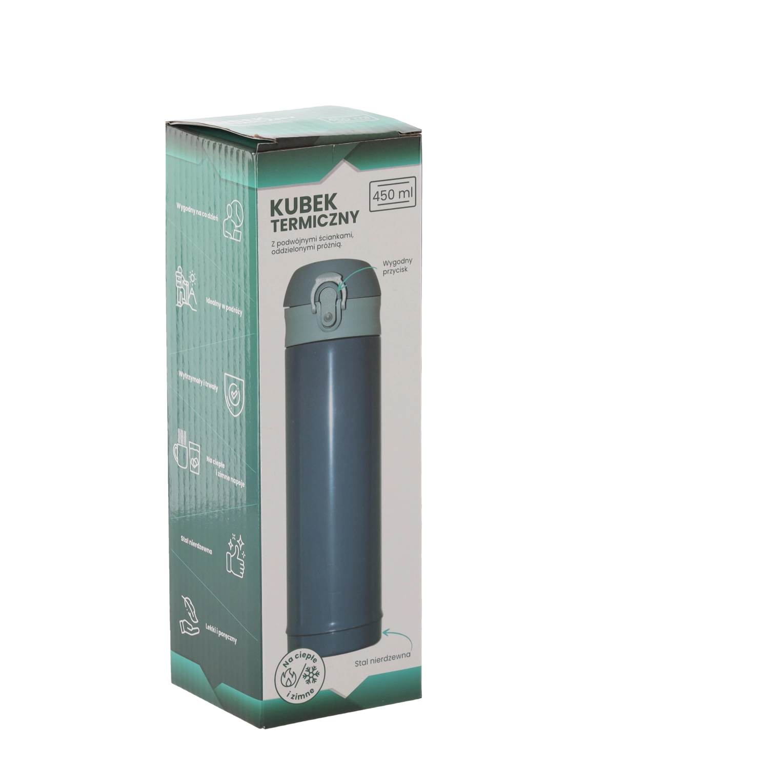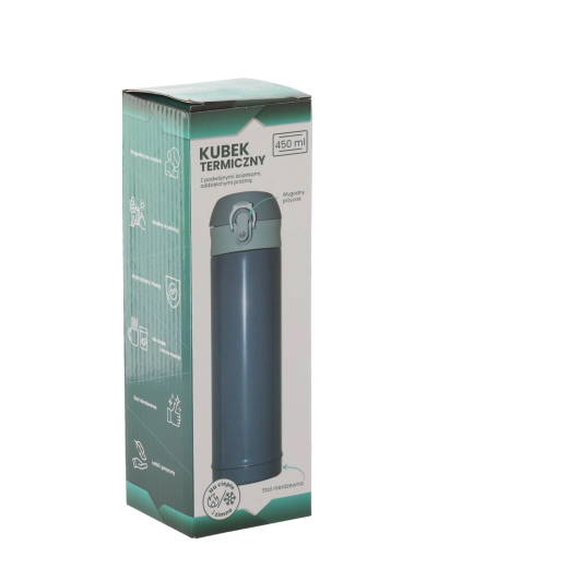 Praktický termohrnek s objemem 450 ml kombinuje moderní design a skvělé izolační vlastnosti. Vakuová nerezová konstrukce udržuje stabilní teplotu nápoje až 6 hodin, takže si kávu, čaj či vodu vychutnáte kdykoliv během dne. Matný povrch je příjemný na dotek a odolný proti otiskům.