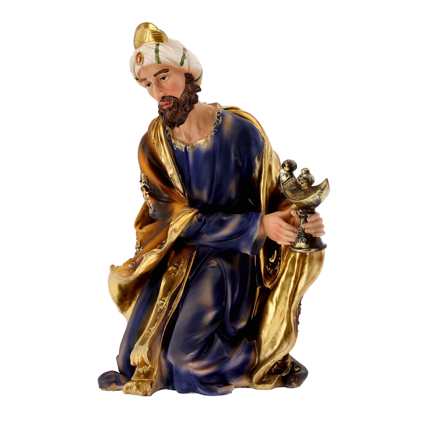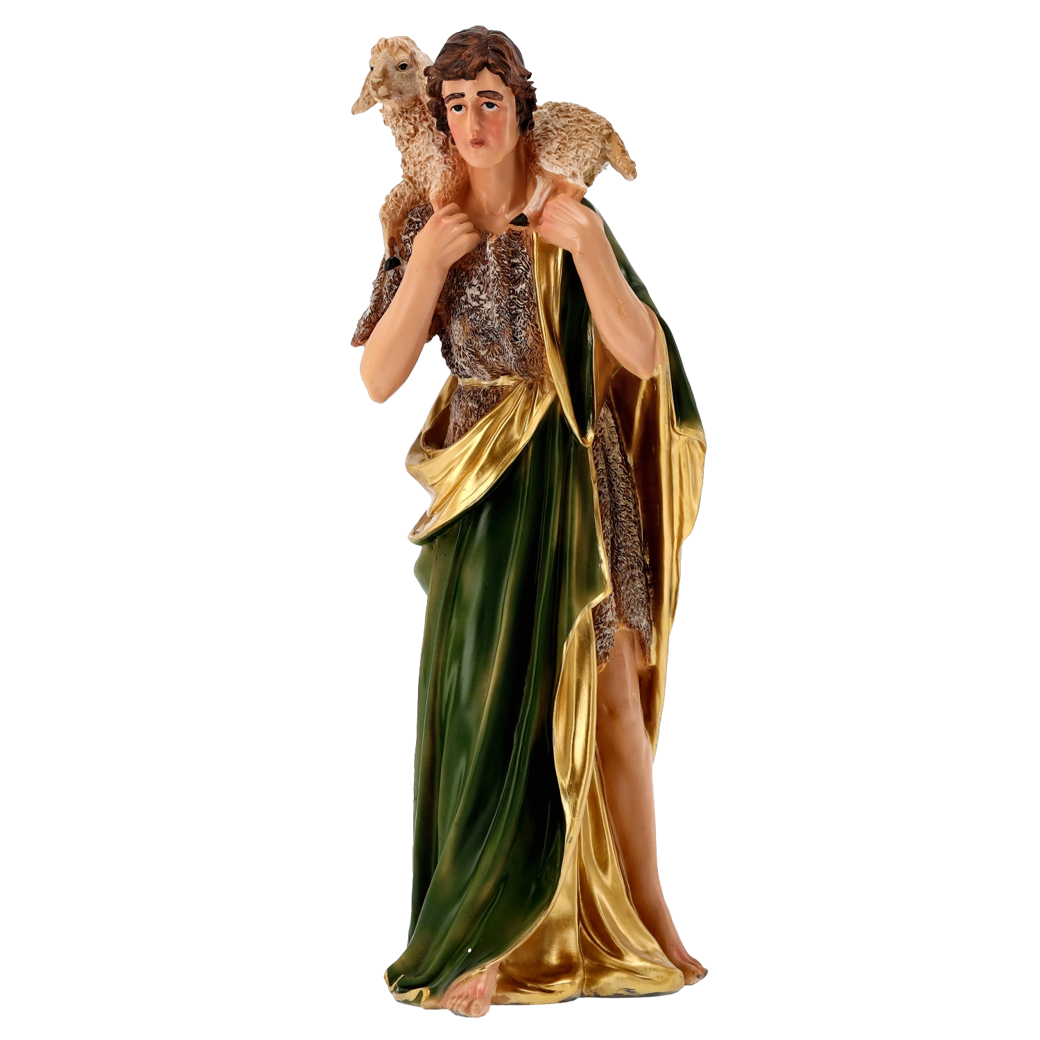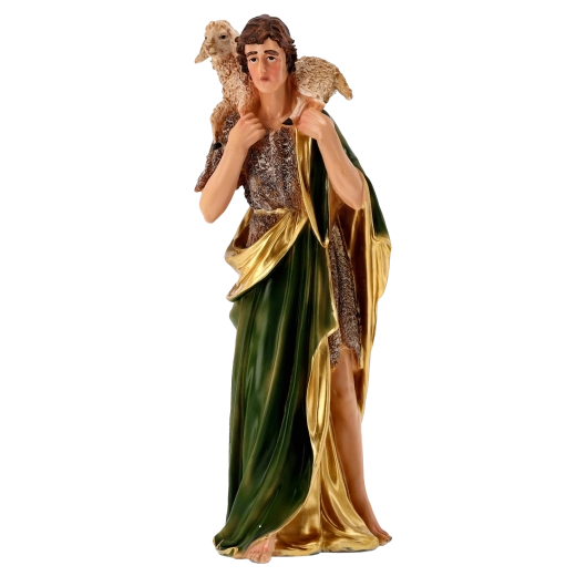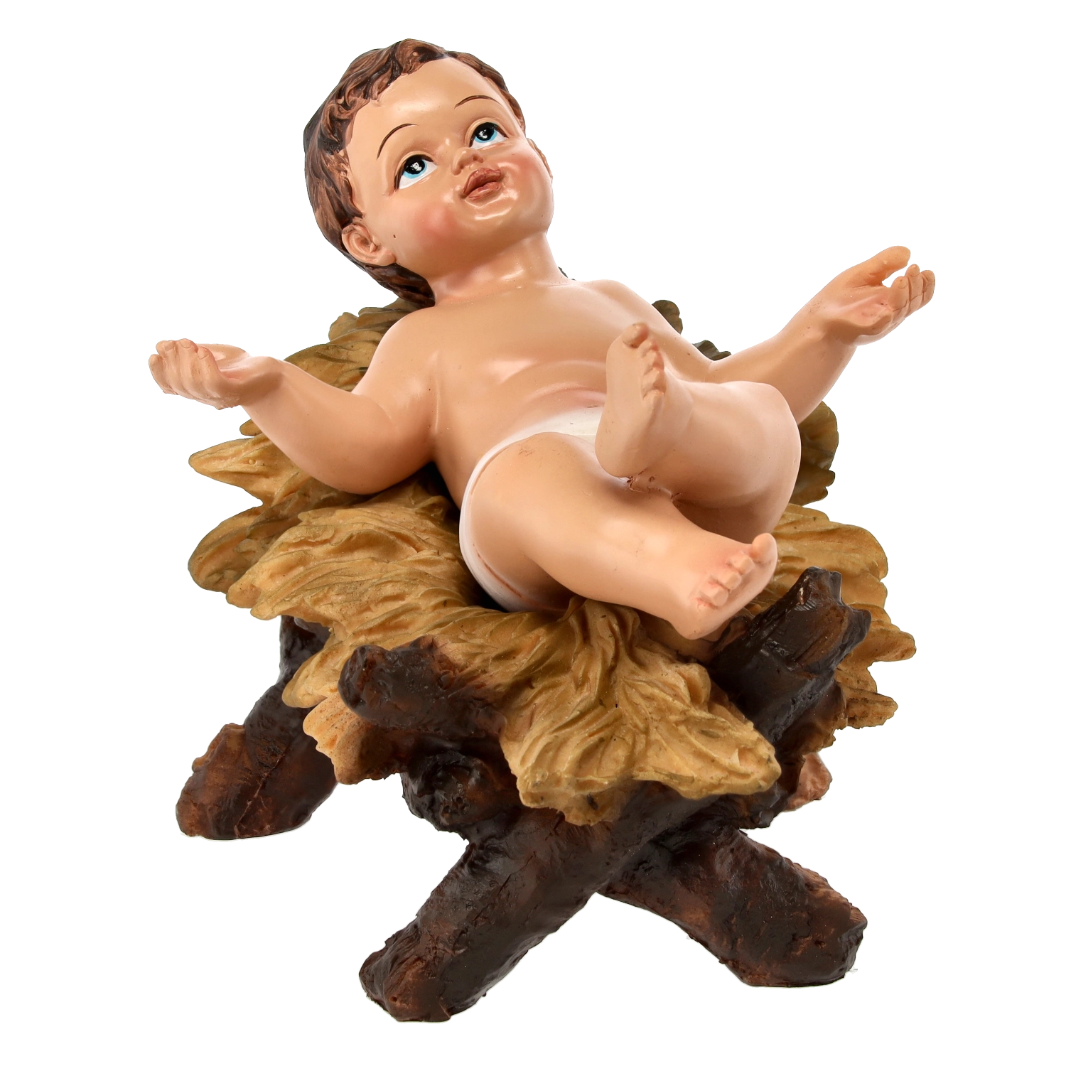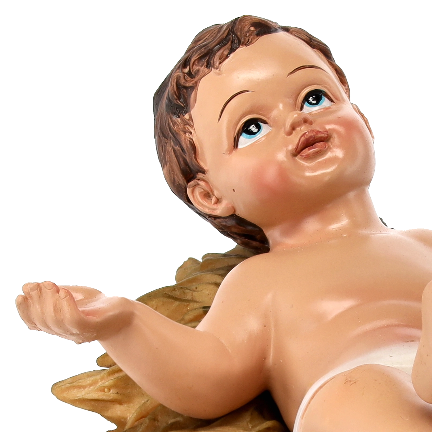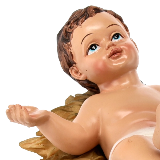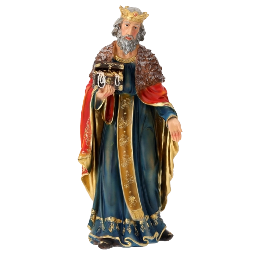 Kompletní betlémská scéna s realistickými detaily a ručním malováním dodá vašim Vánocům tradiční kouzlo. Polyresin (syntetická pryskyřice) je pevný, lehký a odolný vůči povětrnosti, takže figurky lze bezpečně vystavit i venku. Každý kus vyniká jemným modelováním drapérií, zlatými akcenty a stabilní základnou.
