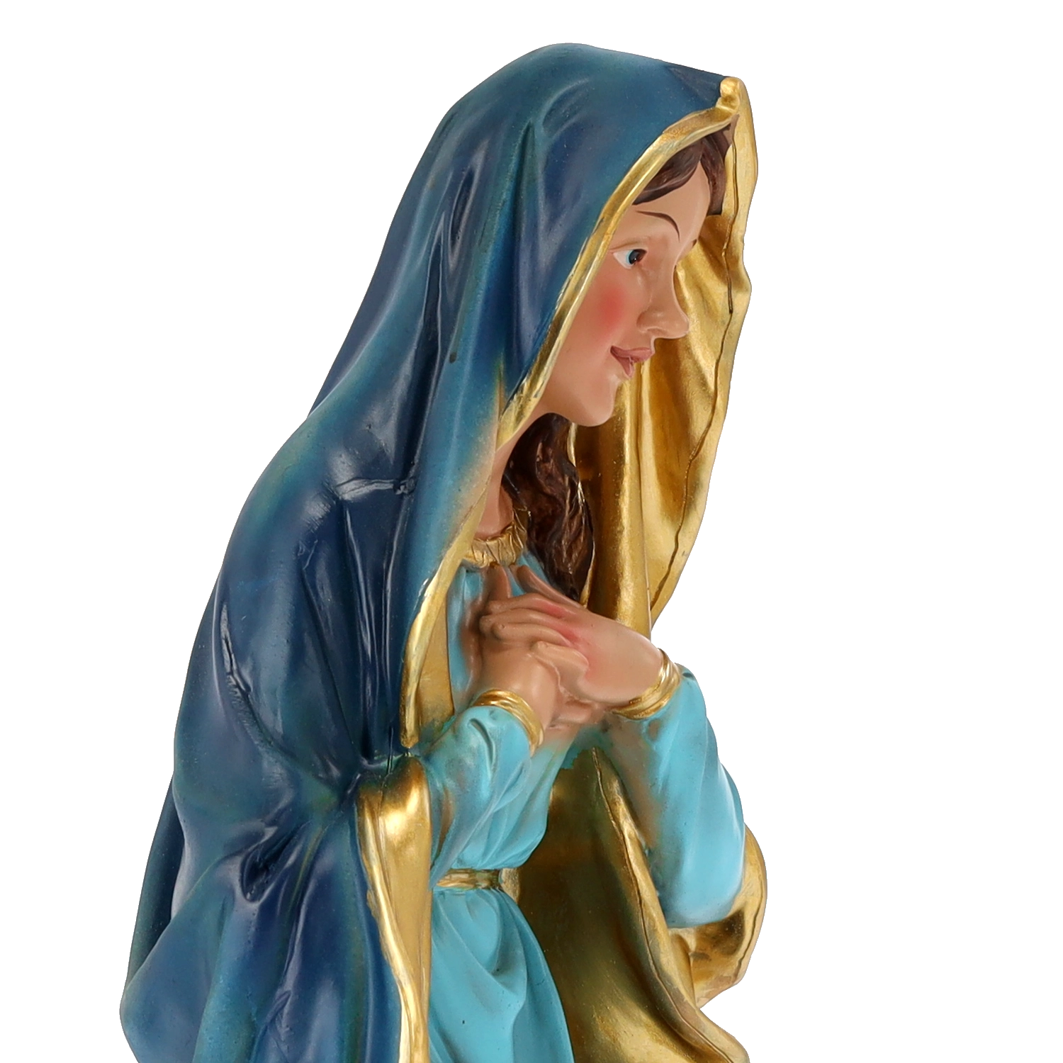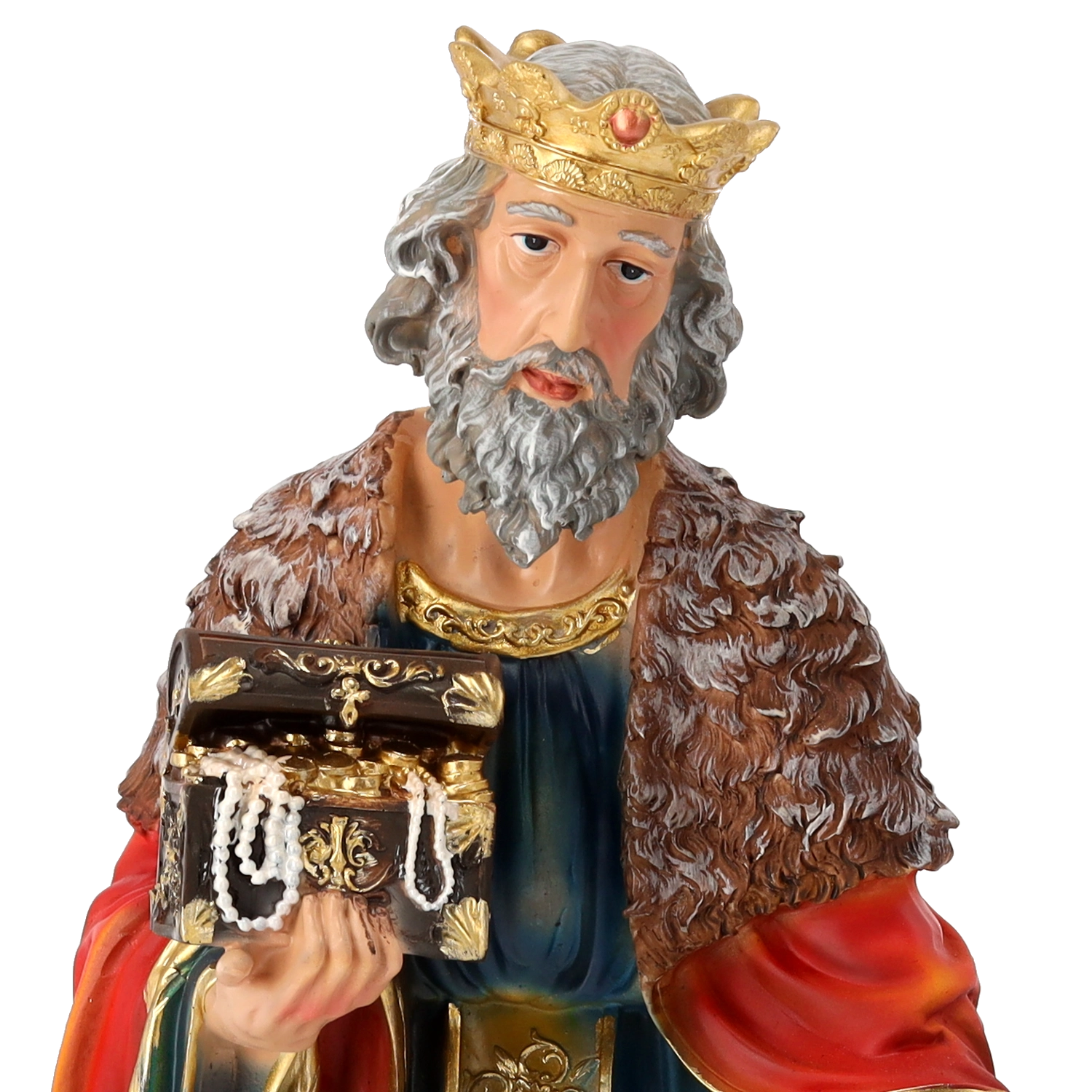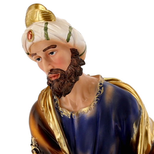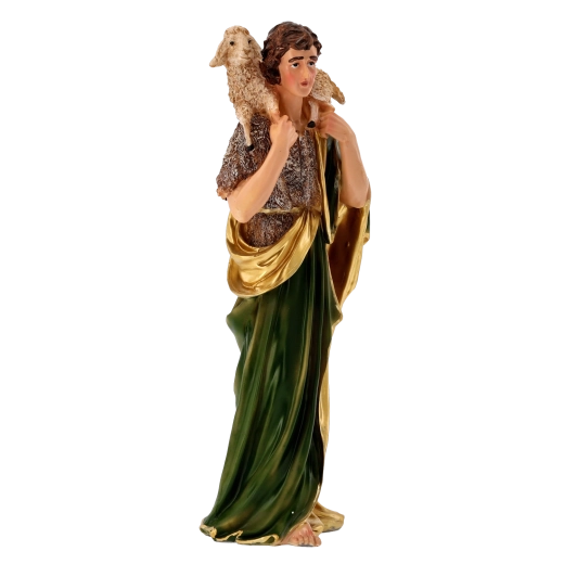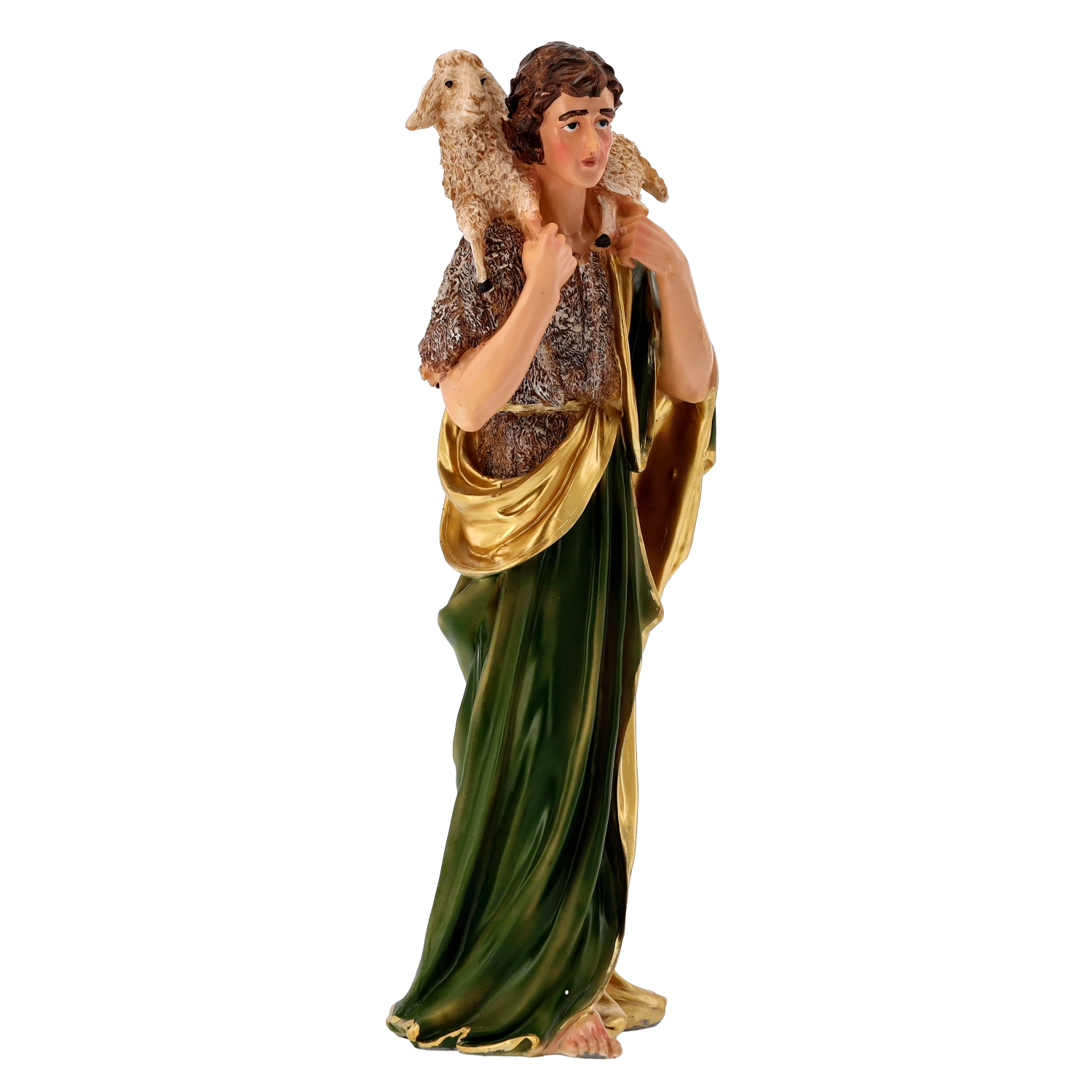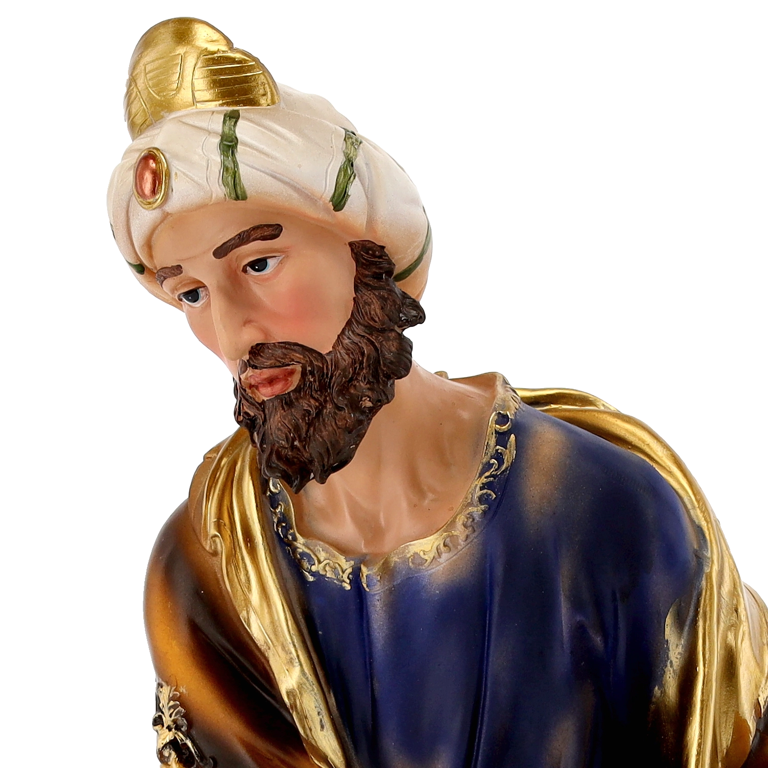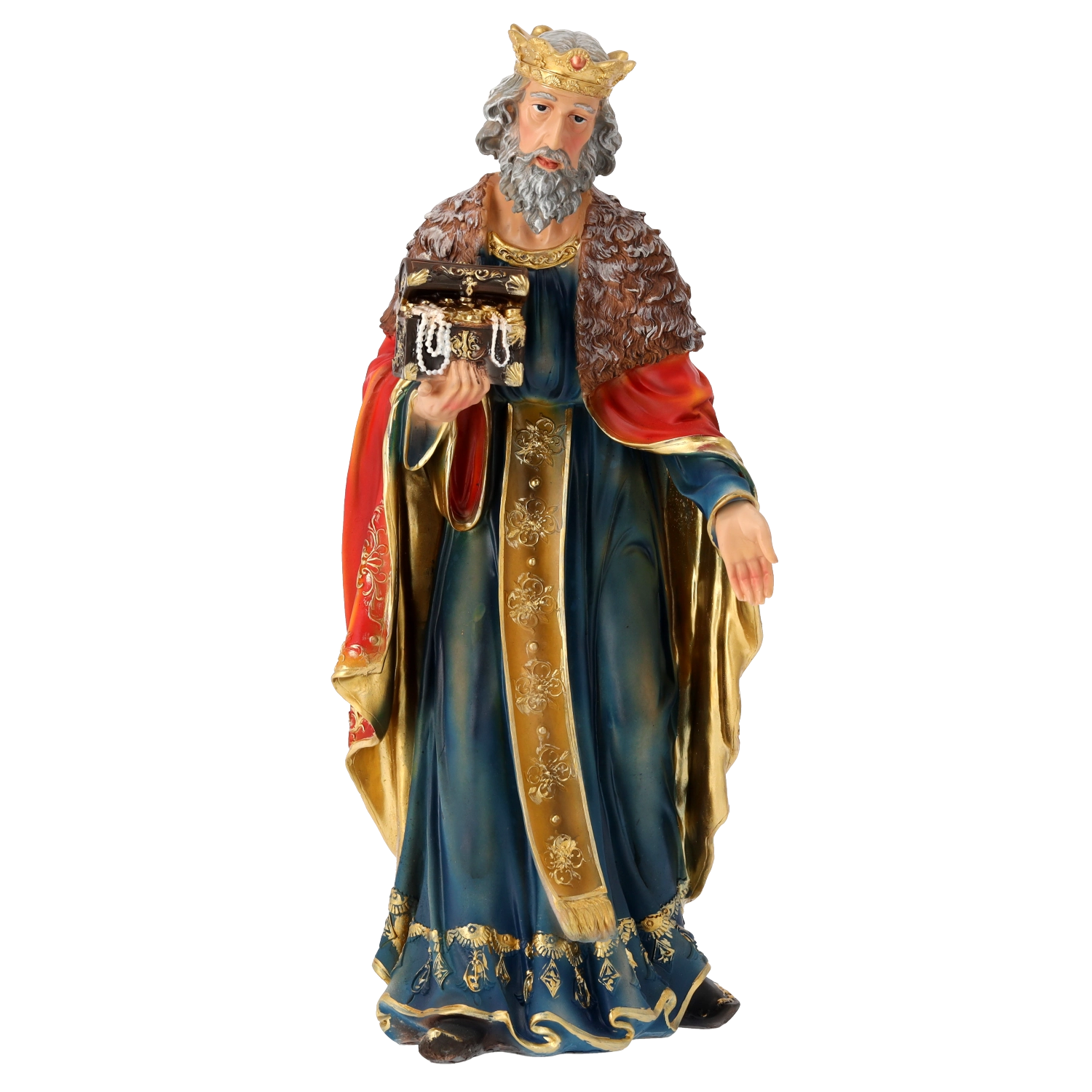 Kompletní betlémská scéna s realistickými detaily a ručním malováním dodá vašim Vánocům tradiční kouzlo. Polyresin (syntetická pryskyřice) je pevný, lehký a odolný vůči povětrnosti, takže figurky lze bezpečně vystavit i venku. Každý kus vyniká jemným modelováním drapérií, zlatými akcenty a stabilní základnou.