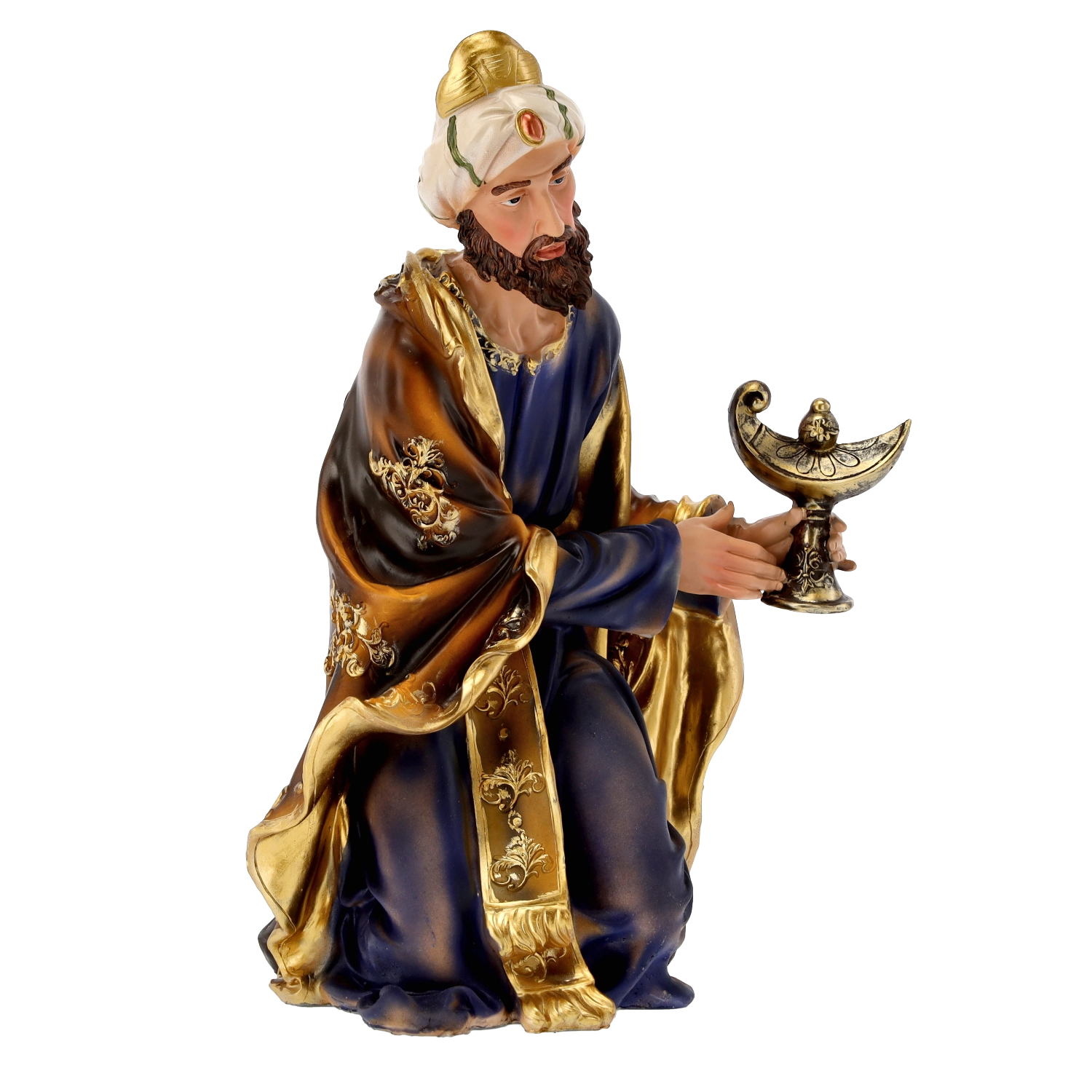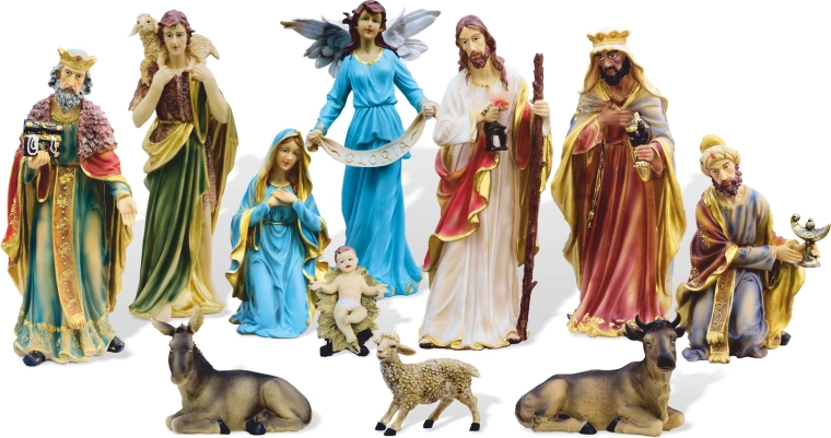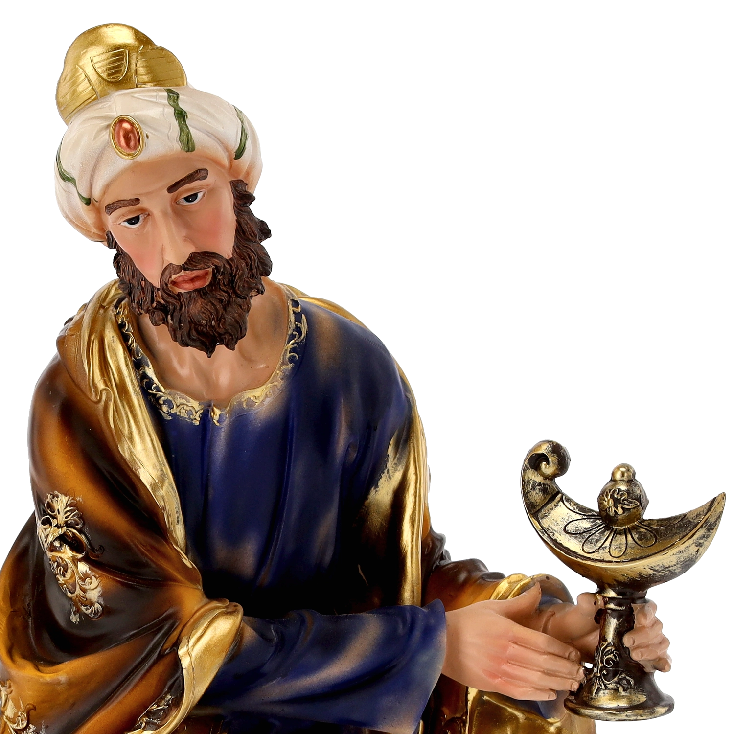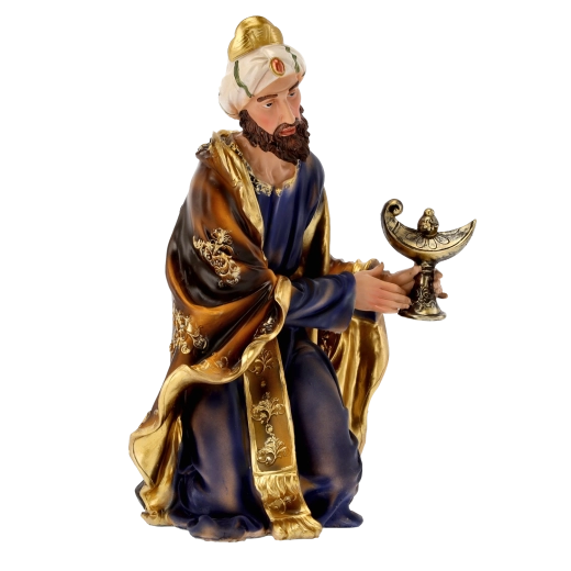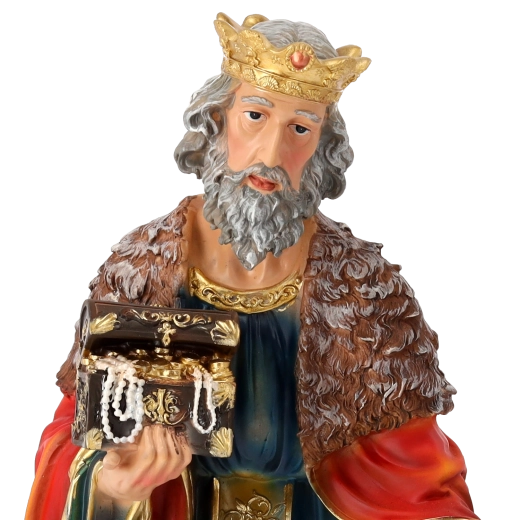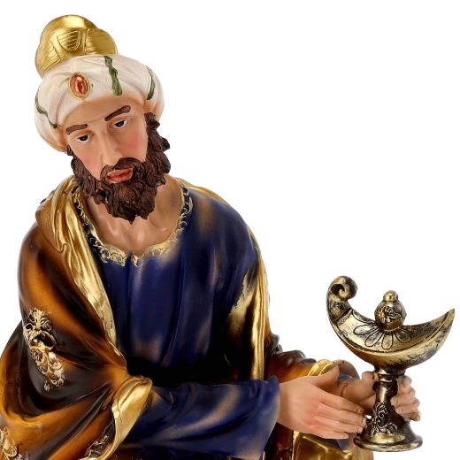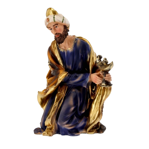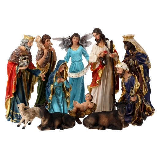 Každá figurka zaujme jemnými rysy tváří, precizními záhyby oděvů a zlatými akcenty. Díky ručnímu malování působí scéna živě a slavnostně.