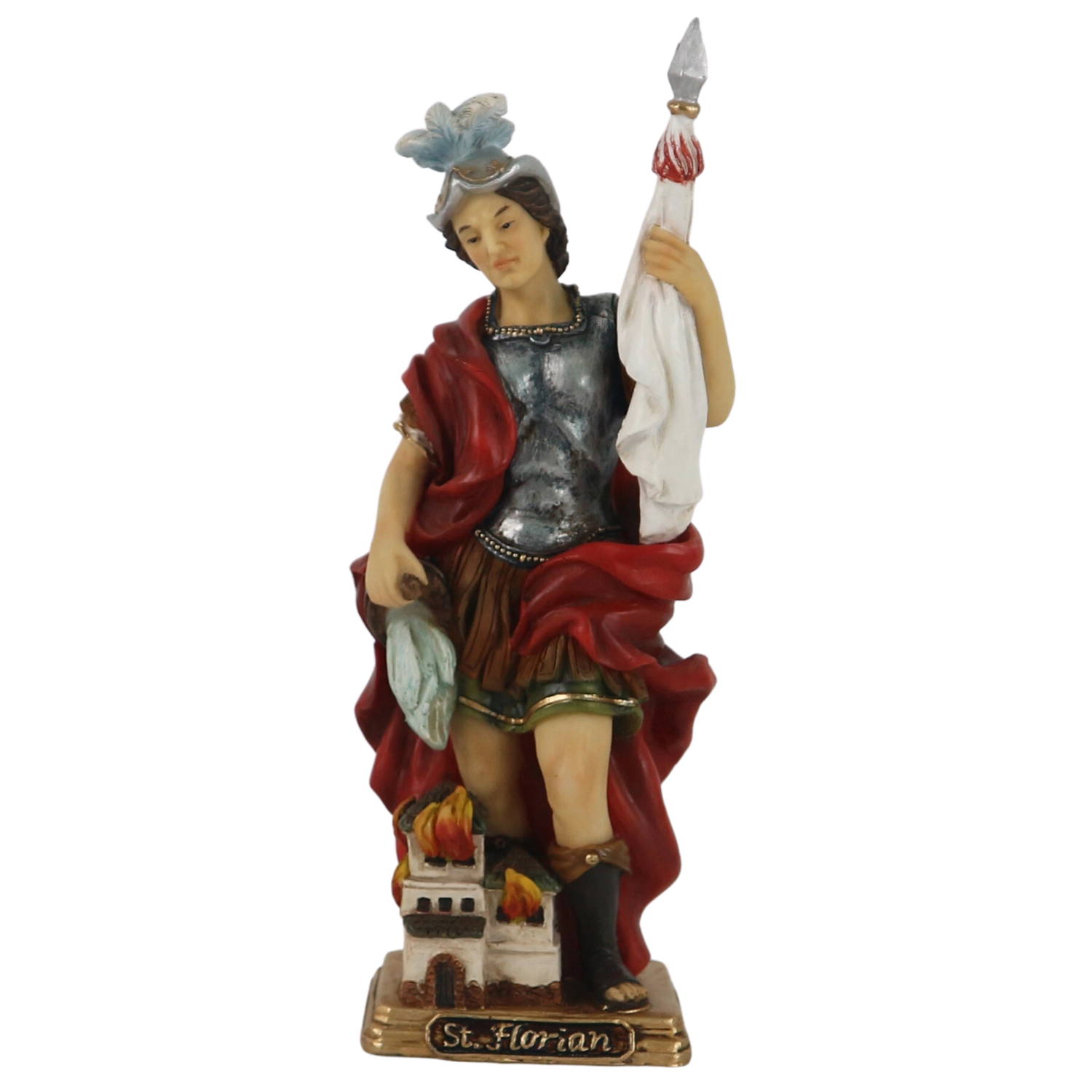Tato detailně zpracovaná soška sv. Floriána spojuje duchovní symboliku s kvalitním provedením. Realistické rysy, výrazný plášť a malované detaily zvýrazňují jeho ochrannou roli proti ohni, takže se skvěle hodí do interiéru i exteriéru.