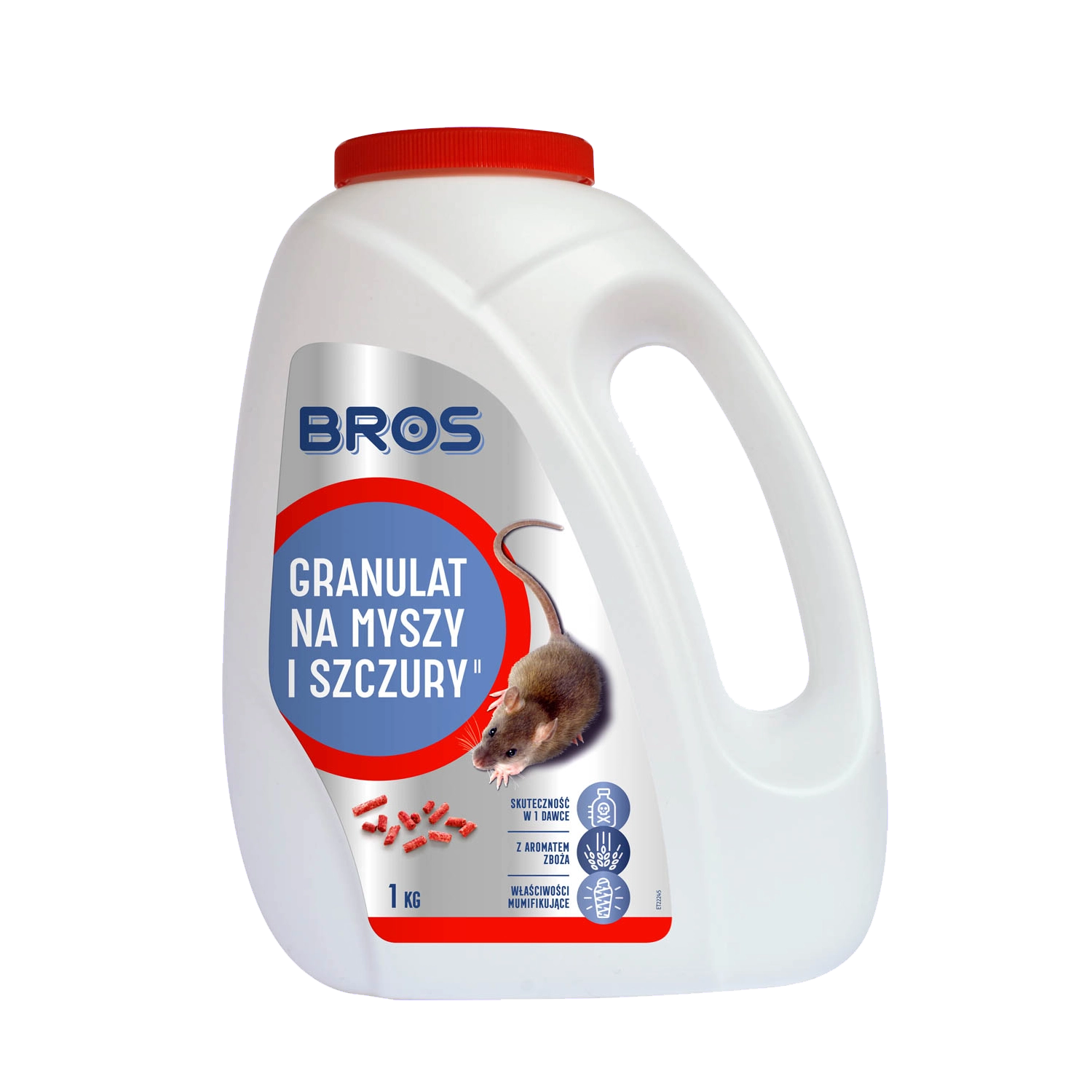 Granulát proti hlodavcům BROS je připraven k okamžitému použití a je vhodný pro nasazení v blízkosti nor, krmných míst a na trasách pohybu hlodavců. Optimalizovaná velikost a tvrdost granulí zvyšuje přijatelnost návnady, zatímco atraktivní obilná aromata lákají jak myši, tak krysy. Účinná látka bromadiolon působí po jednorázové konzumaci s několikadenním zpožděním, takže hlodavci nespojují návnadu s úhynem.
