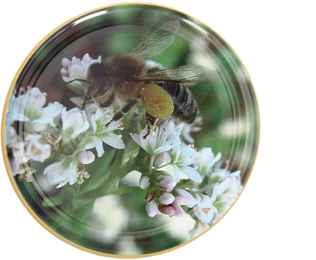 Praktická sada 10 víček o průměru 82 mm s atraktivním motivem včely na květech pro sklenice s medem i další domácí produkty. Víčka typu Twist-off z pocínovaného plechu se silikonovým těsněním zajistí pevné a hermetické uzavření. Vhodná pro studené i tepelné zpracování včetně sterilizace a pasterizace.