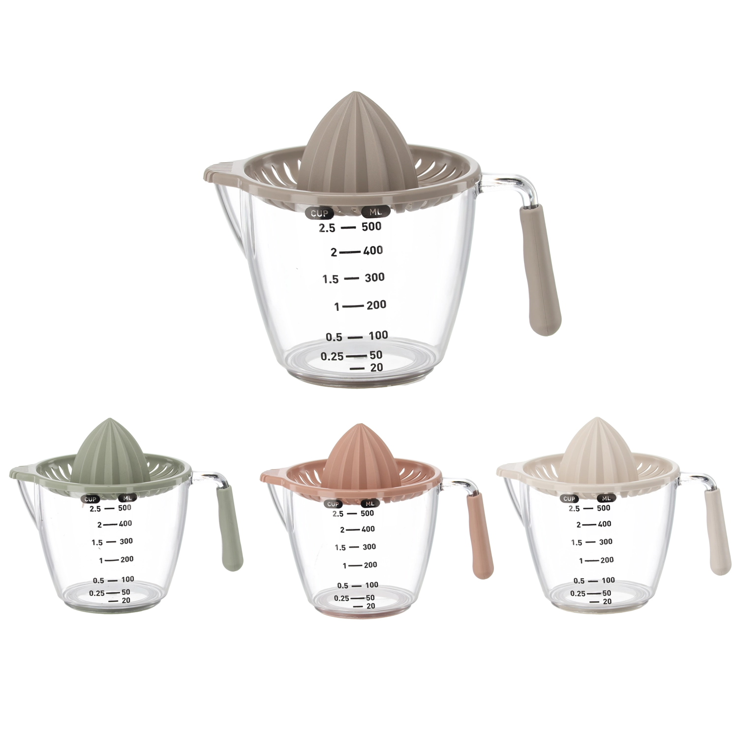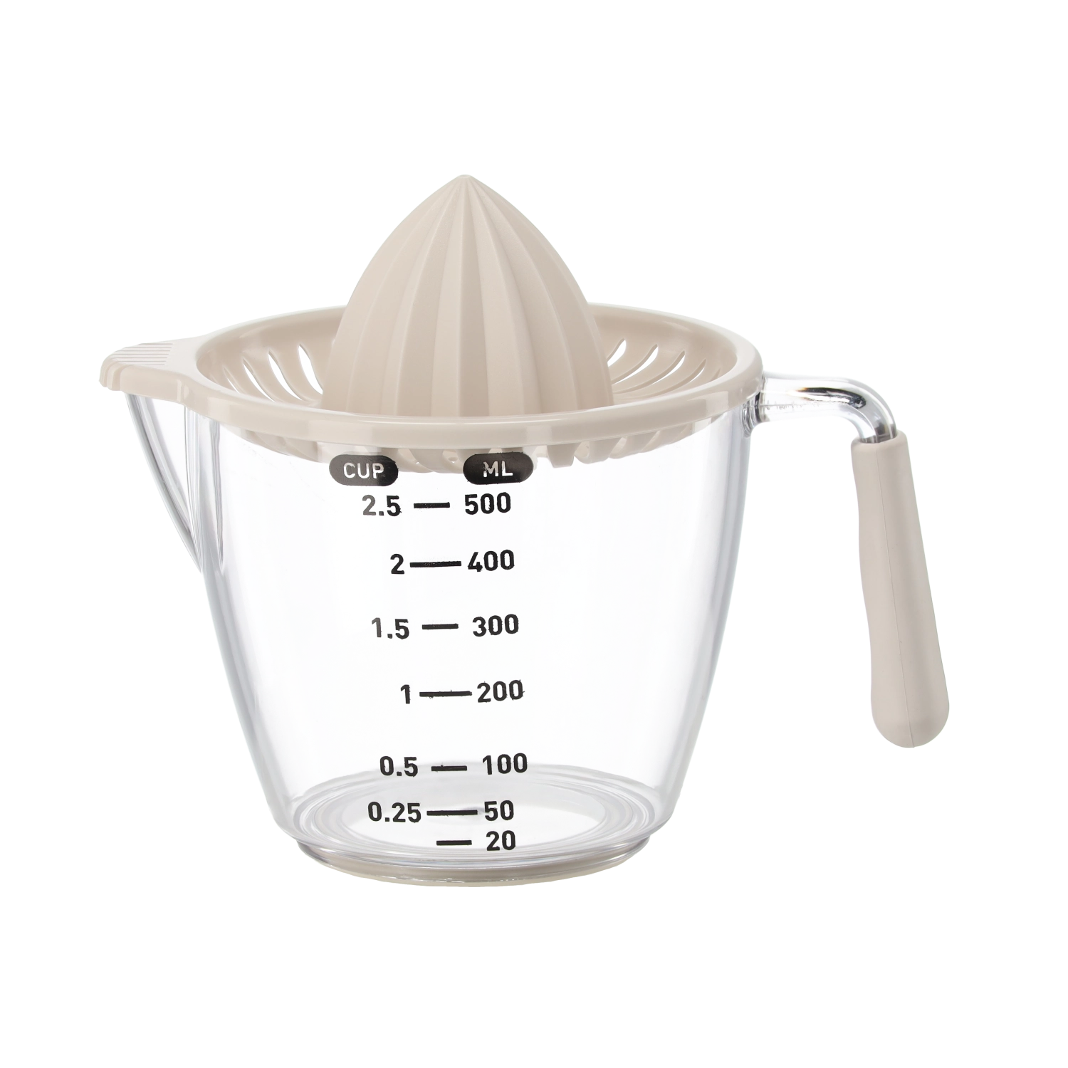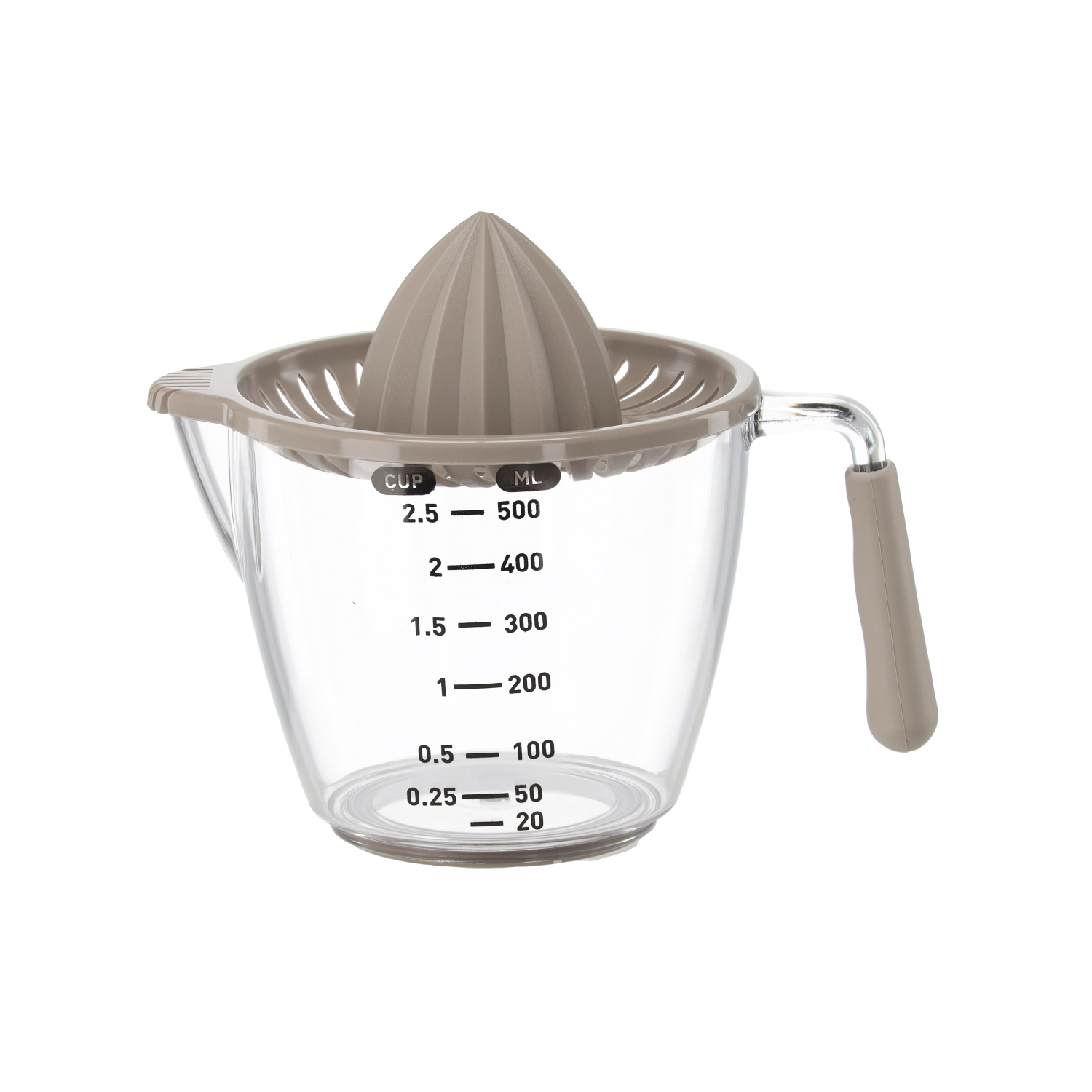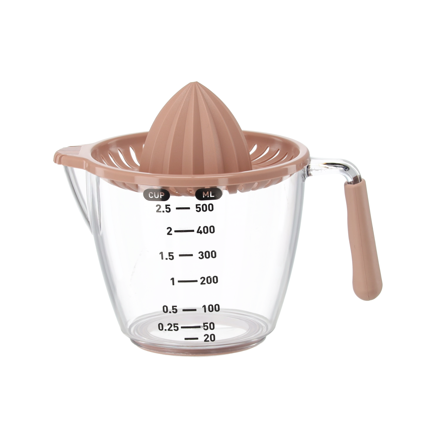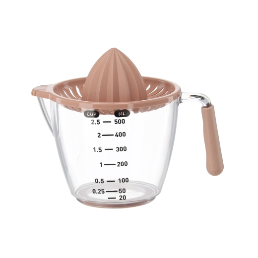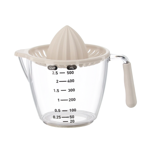 Tento kompaktní ruční odšťavňovač umožňuje lisovat citrony, limetky i pomeranče přímo do průhledného odměrného džbánku s ryskami v mililitrech a šálcích. Rýhovaný kužel efektivně extrahuje šťávu, zatímco sítko zachytí pecky i dužinu. Díky pohodlné rukojeti a praktickému zobáčku přelijete tekutinu bez kapek a nepořádku.