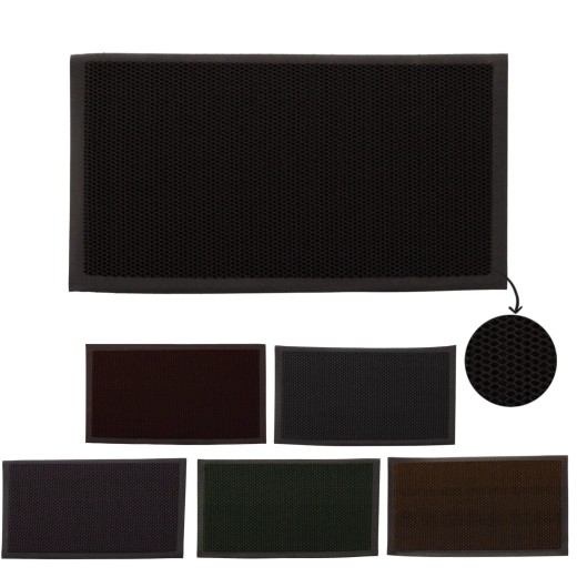 Materiálová směs 85 % PVC a 15 % polyesteru zajišťuje vysokou odolnost vůči povětrnostním vlivům i mechanickému opotřebení. Antiskluzová spodní vrstva drží rohož pevně na místě na různých typech podlah a snižuje riziko uklouznutí. Údržba je maximálně jednoduchá – rohož stačí vyklepat nebo opláchnout vodou.