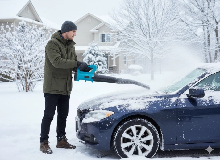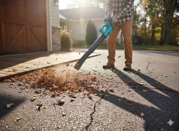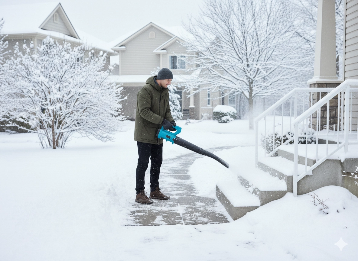 - Celoroční využití: foukání listí, čištění teras a chodníků, odfoukávání lehkého čerstvého sněhu z auta, schodů či verandy.