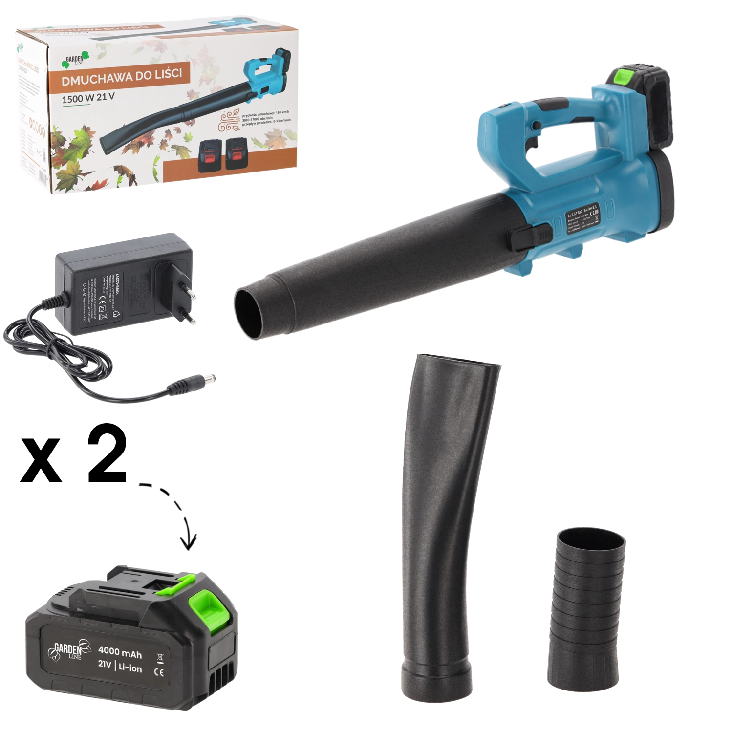 V balení jsou 2× Li‑ion akumulátory 21 V / 4Ah a nabíječka. Pracujte déle bez přerušení a mějte zařízení vždy připravené k použití.