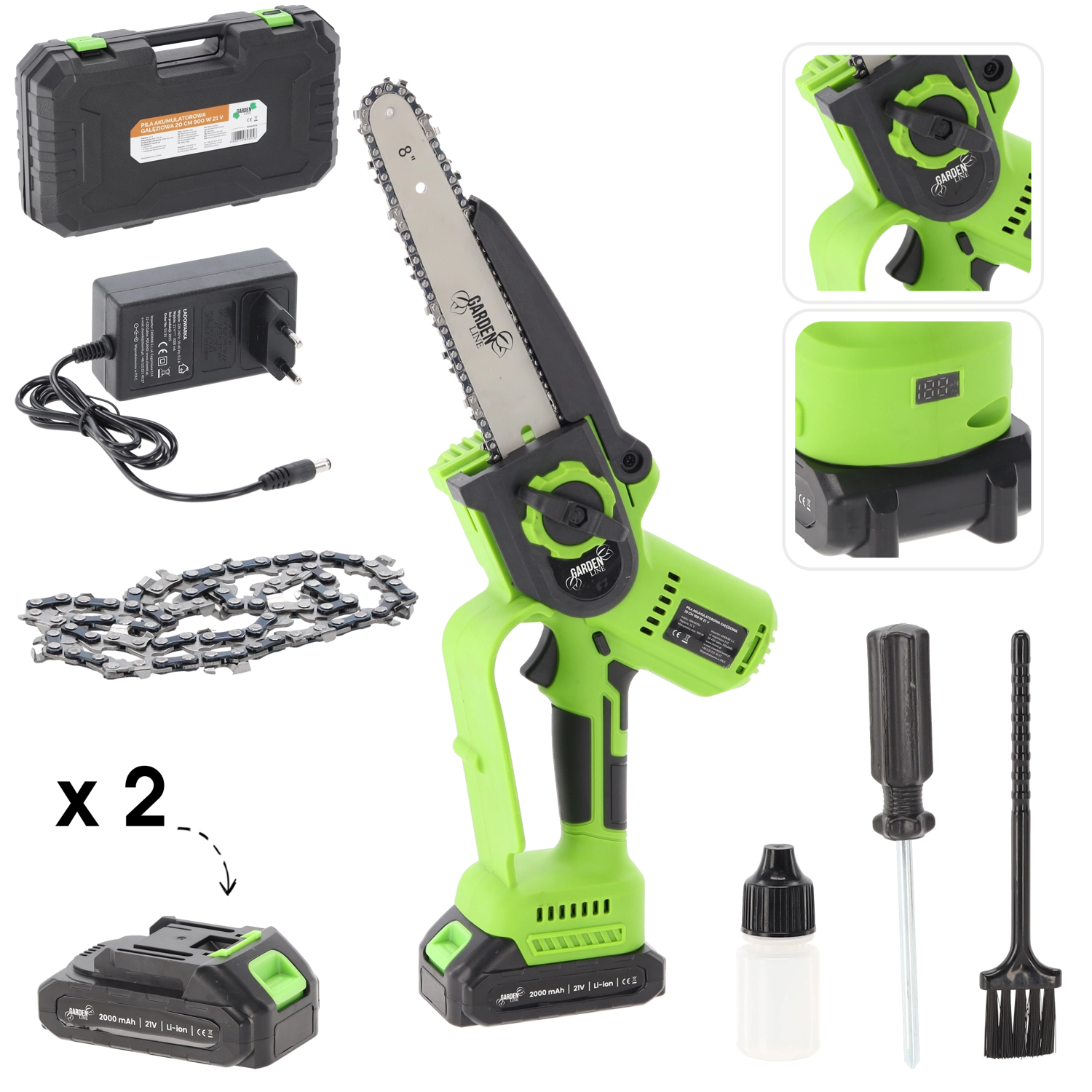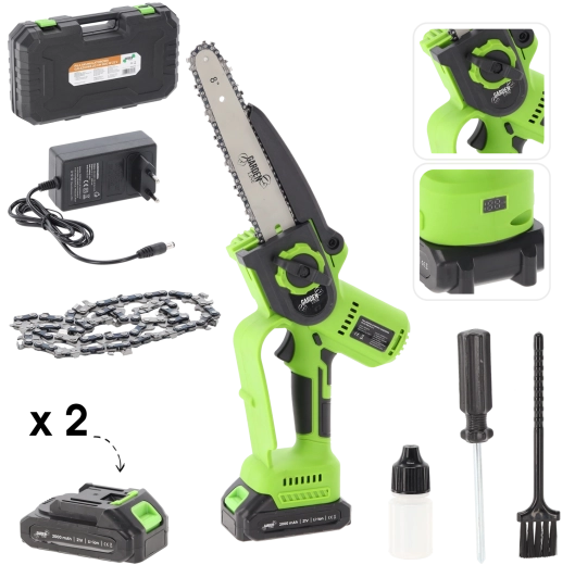Kompaktní a výkonná akumulátorová mini řetězová pila pro snadné prořezávání větví, keřů a drobné dřevařské práce. Díky bezkartáčovému motoru, lištu 20 cm a rychlosti 4500 ot./min nabízí hladký a rychlý řez bez kabelů. V balení najdete vše potřebné včetně 2 baterií, nabíječky a náhradního řetězu pro nepřerušovanou práci na zahradě.
