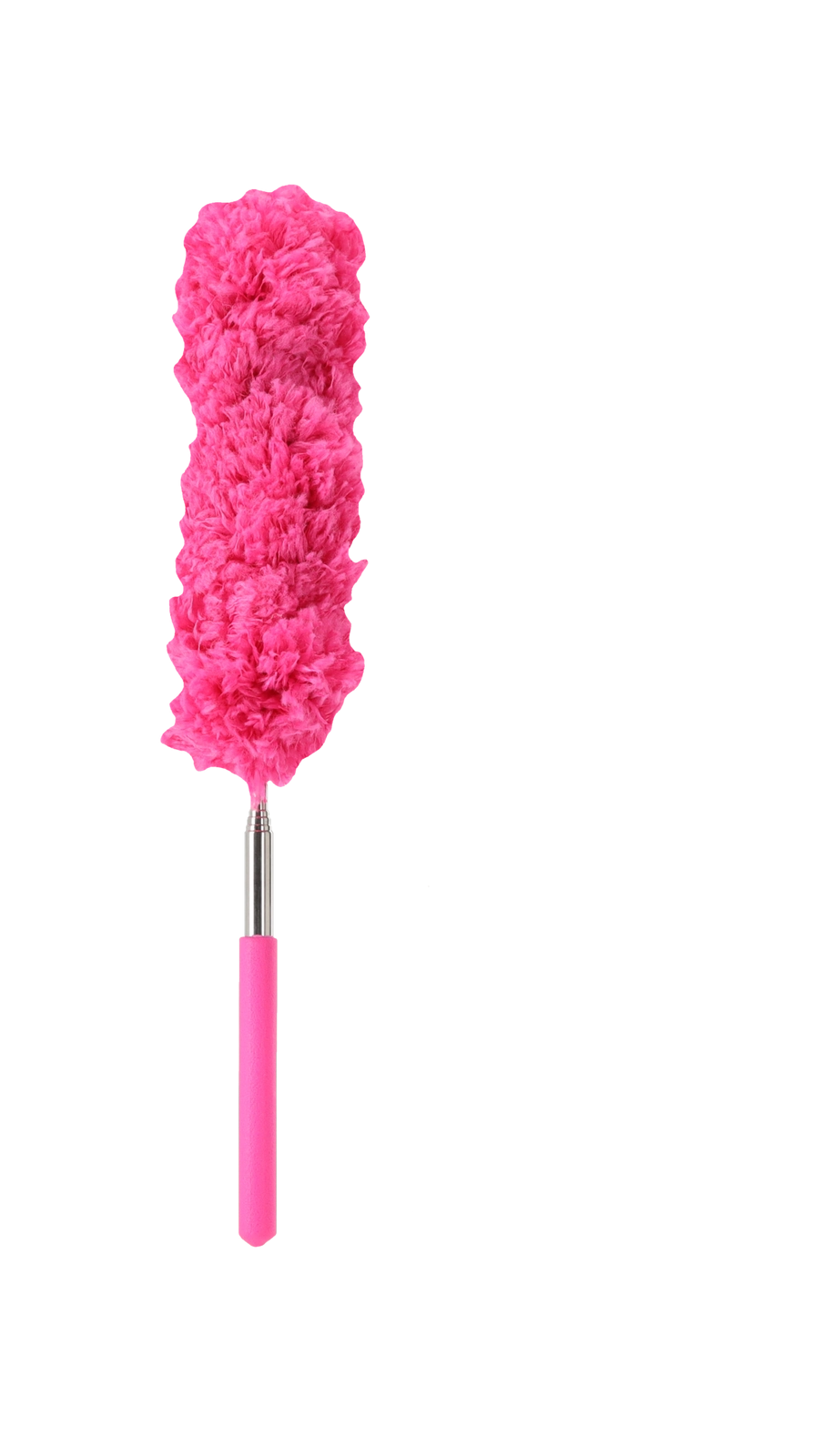 Teleskopická kovová rukojeť umožňuje nastavení délky 38–85 cm, takže pohodlně vyčistíte horní police, ventilátory i horní hrany skříní.
