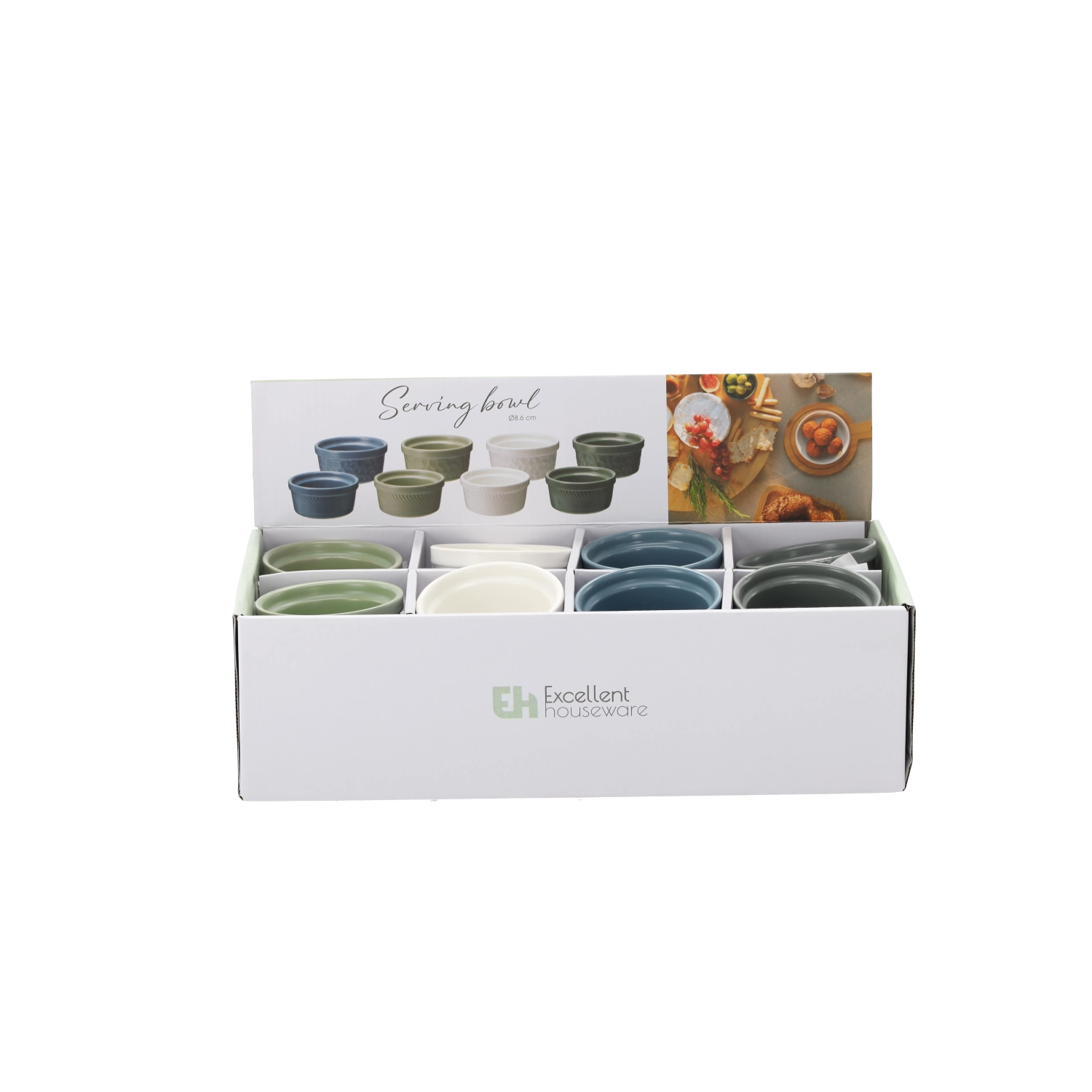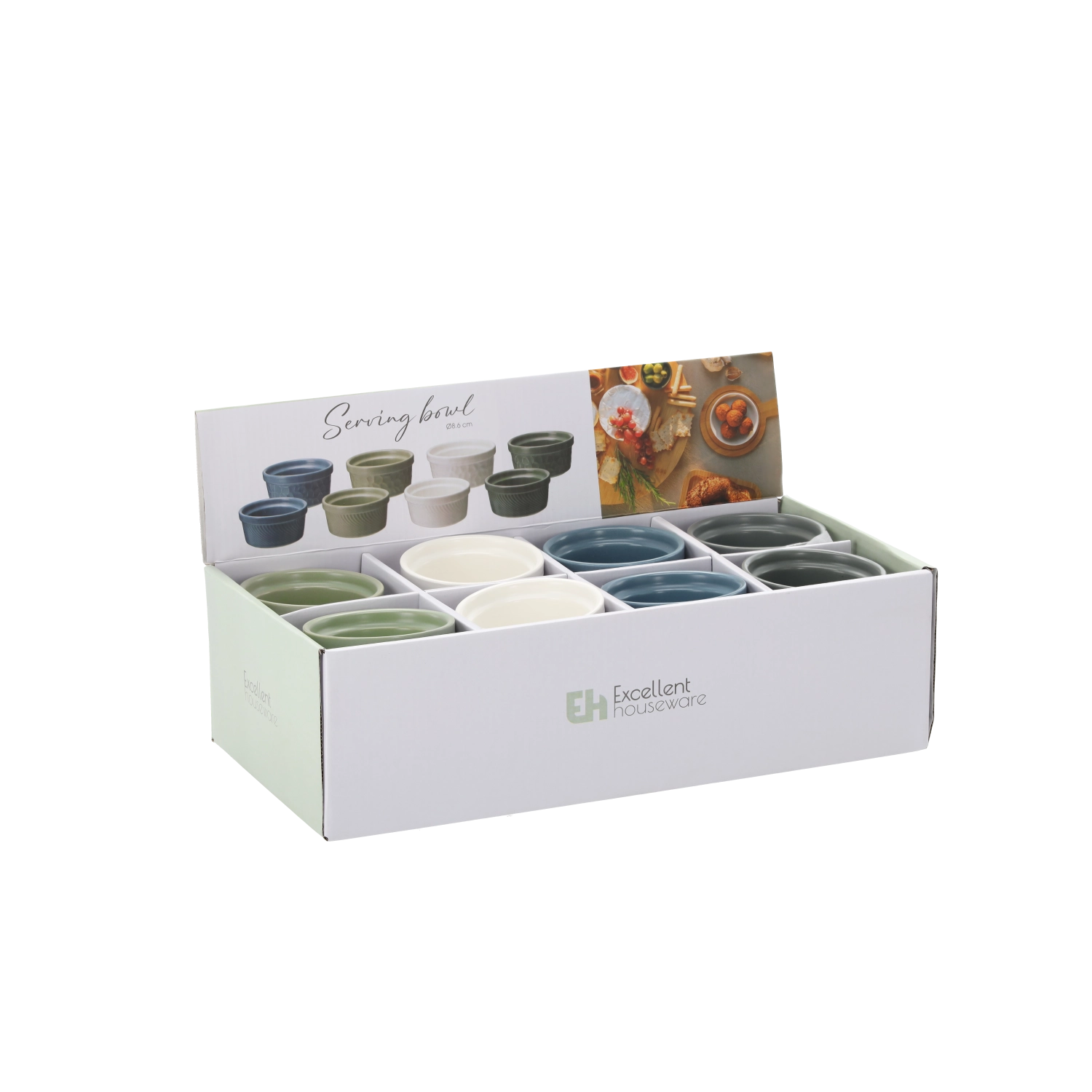 Kompaktní průměr 8,6 cm a výška 4 cm jsou ideální pro malé porce. Vyberte si z bílé, šedé, zelené a modré varianty.