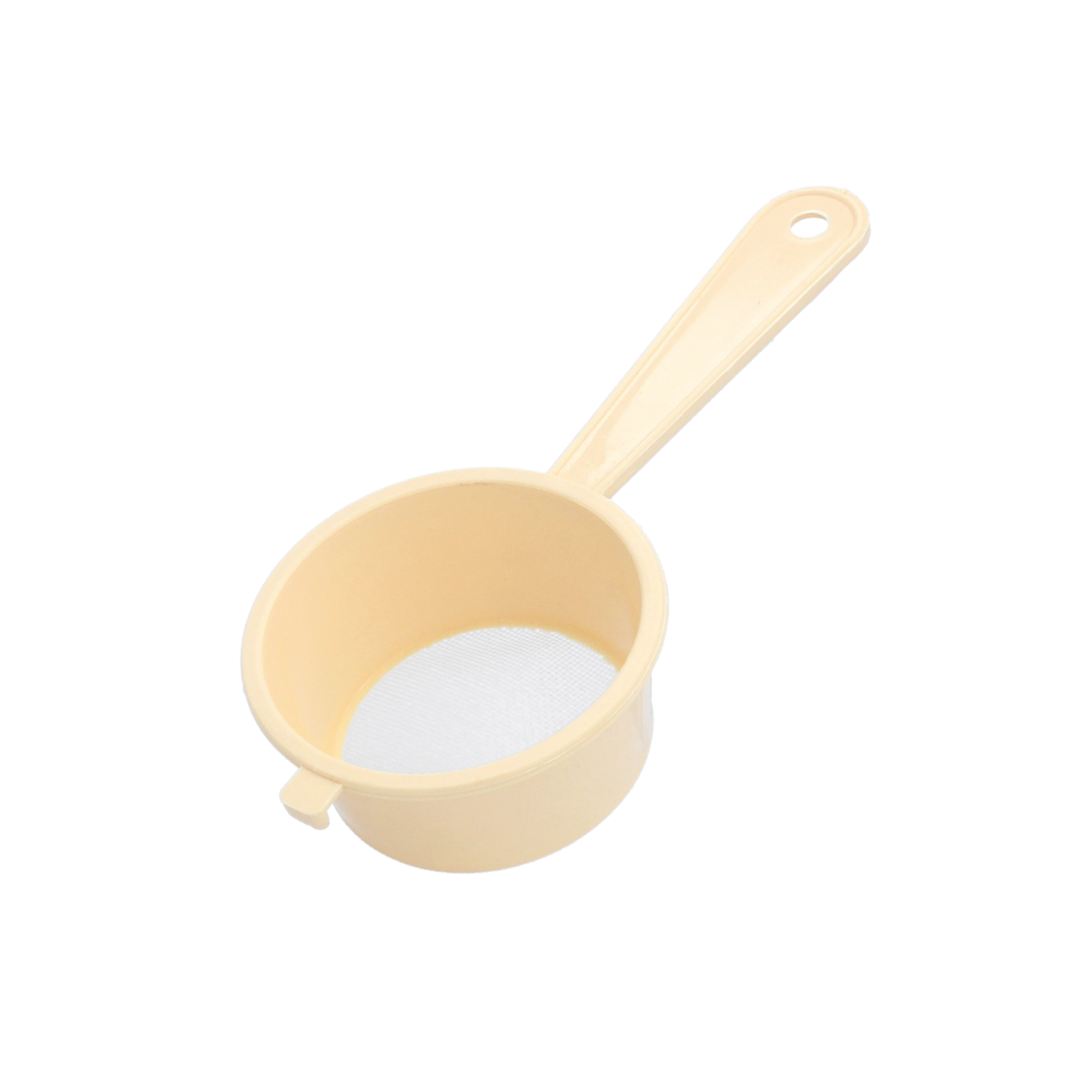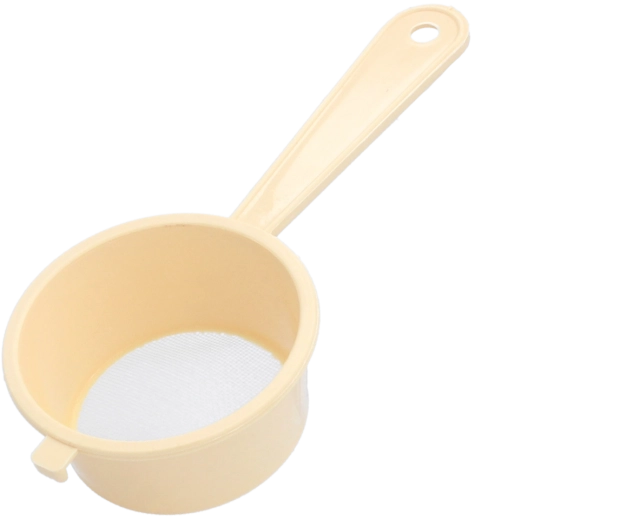 Praktické kuchyňské sítko o průměru 7,5 cm s jemnými oky 0,6 mm pro prosévání mouky a cukru, cezení tekutin i odkapávání drobných potravin. Lehký a odolný plast je bezpečný pro styk s potravinami, ergonomická rukojeť a otvor na zavěšení zajišťují pohodlné používání a úsporu místa.