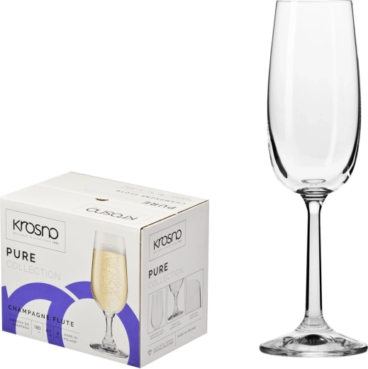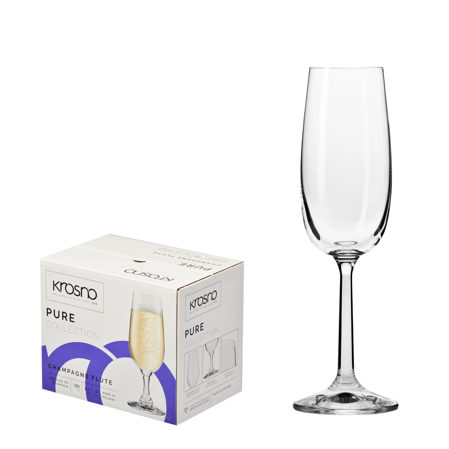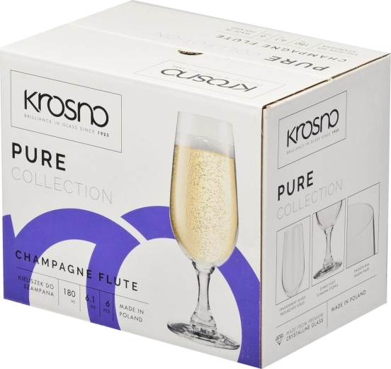 Vychutnejte si šumivé víno ve stylu se sadou sklenic na šampaňské Krosno PURE o objemu 170 ml. Díky vysoké nožce a stabilní základně sklenice působí elegantně a zároveň pohodlně sedí v ruce. Křišťálově čisté bezolovnaté sklo Crystalline podtrhuje barvu nápoje a udržuje jeho svěžest.
