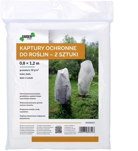 Praktické zimní kryty z bílé netkané textilie o gramáži 50 g/m² spolehlivě chrání citlivé rostliny před mrazem, větrem a ztrátou vlhkosti. Ideální během bezsněžných zim, jsou vícekrát použitelné a pomáhají zabránit ulpívání mokrého sněhu i lámaní větviček. Balení obsahuje 2 ks o rozměru 0,8 × 1,2 m v bílé barvě.