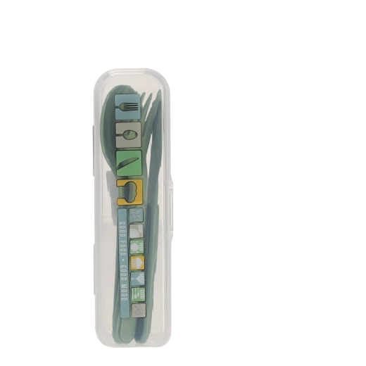 Transparentní cestovní pouzdro udrží lžíci, vidličku i nůž čisté a bezpečně uložené. Perfektní do tašky, batohu i lunch boxu.