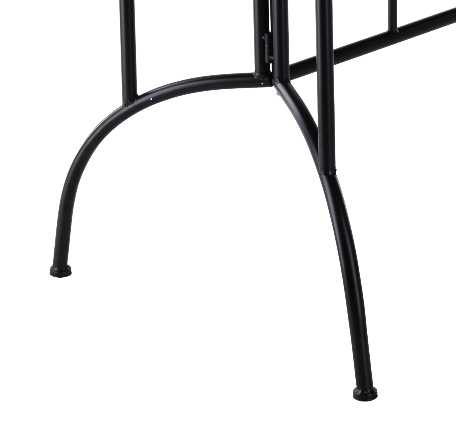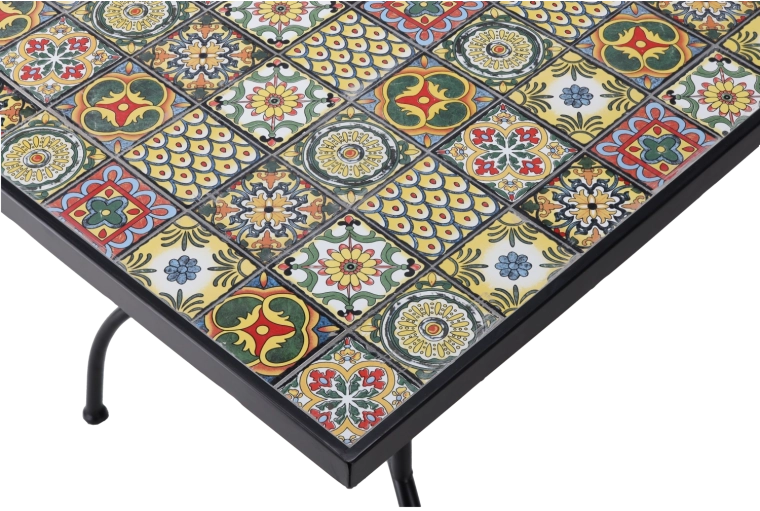 Stabilní kovové nohy s výztuhami zajišťují pevnost a jistotu na různých površích. Hladký, omyvatelný povrch mozaiky se snadno udržuje, takže je stůl skvělý pro každodenní používání i víkendové grilování. Snadno jej zkombinujete s ratanovými či kovovými židlemi a vytvoříte harmonický venkovní set.