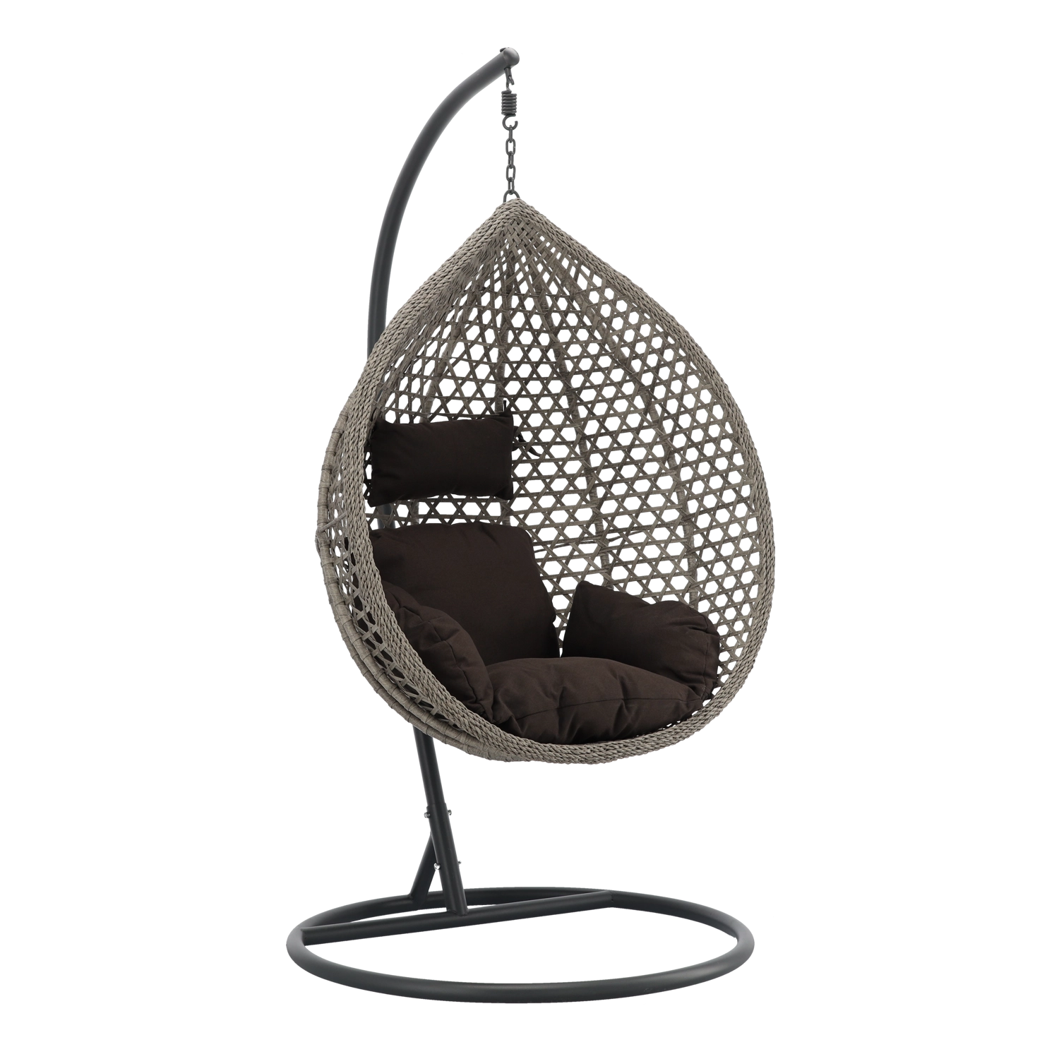 Stylové závěsné křeslo v jednotné šedé barevnosti přinese do každé terasy, balkonu i obýváku klidnou atmosféru a pohodlí. Robustní tmavě šedý rám zajišťuje stabilitu a bezpečné houpání, prostorný koš s měkkými polštáři zve k odpočinku. Díky nadčasovému designu a odolným materiálům je ideální pro relax i každodenní použití doma i venku.