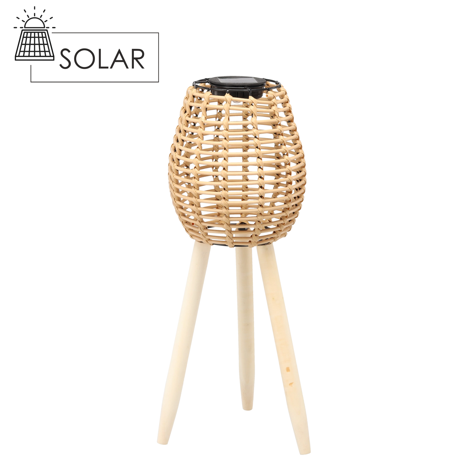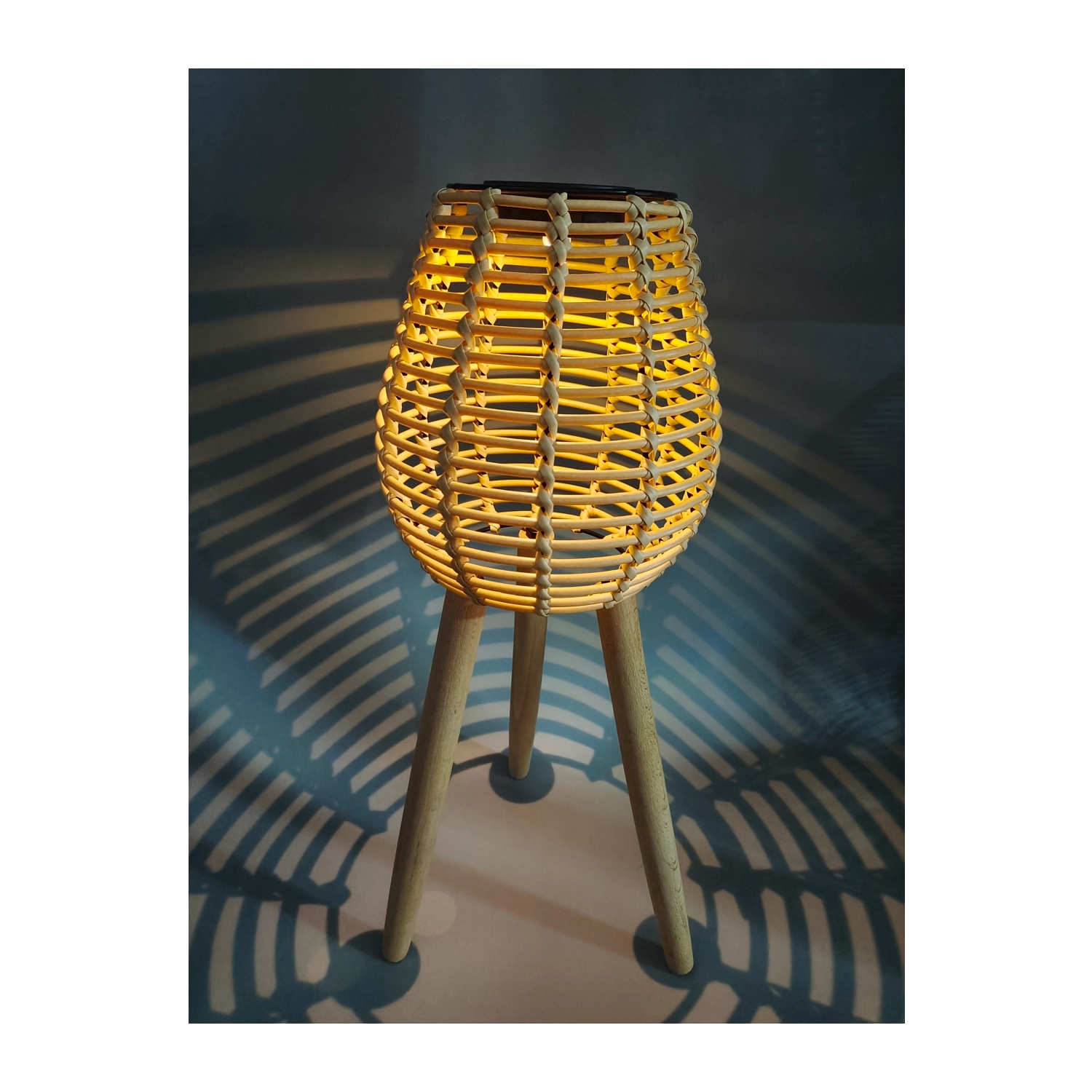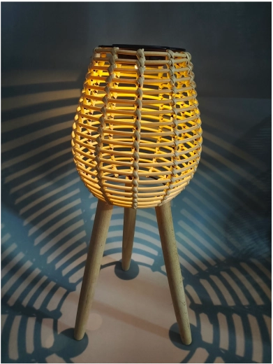 Solární lampion s výškou 52 cm zaujme přírodní estetikou a stabilní třínohou konstrukcí. Polokrystalický solární panel během dne nabíjí akumulátor a po setmění se rozsvítí úsporná LED, která vytváří měkké, dekorativní světlo pro relax i posezení s přáteli.