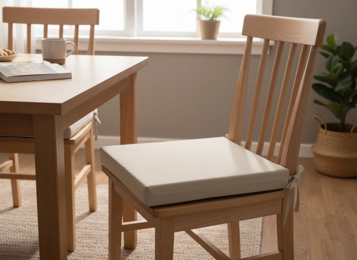 Tloušťka 5 cm a měkké polyesterové vlákno zajišťují příjemné polstrování pro každodenní komfort u jídelního stolu i při práci.