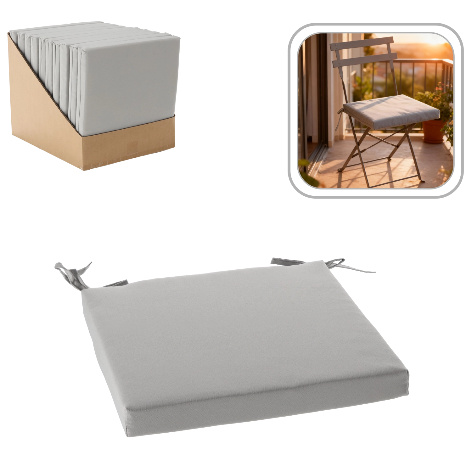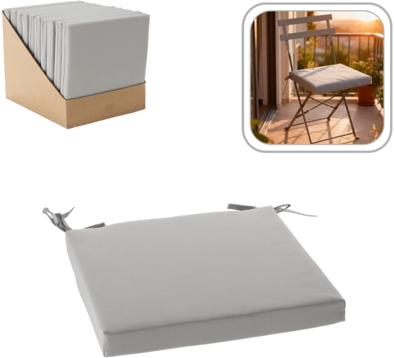 Vylepšete své židle elegantním polštářem 40 × 40 × 5 cm ve světle šedém odstínu. Díky měkkému polstrování poskytuje dlouhodobé pohodlí, zatímco vodoodpudivý potah z 100% polyesteru usnadňuje údržbu v kuchyni, jídelně i na balkoně.