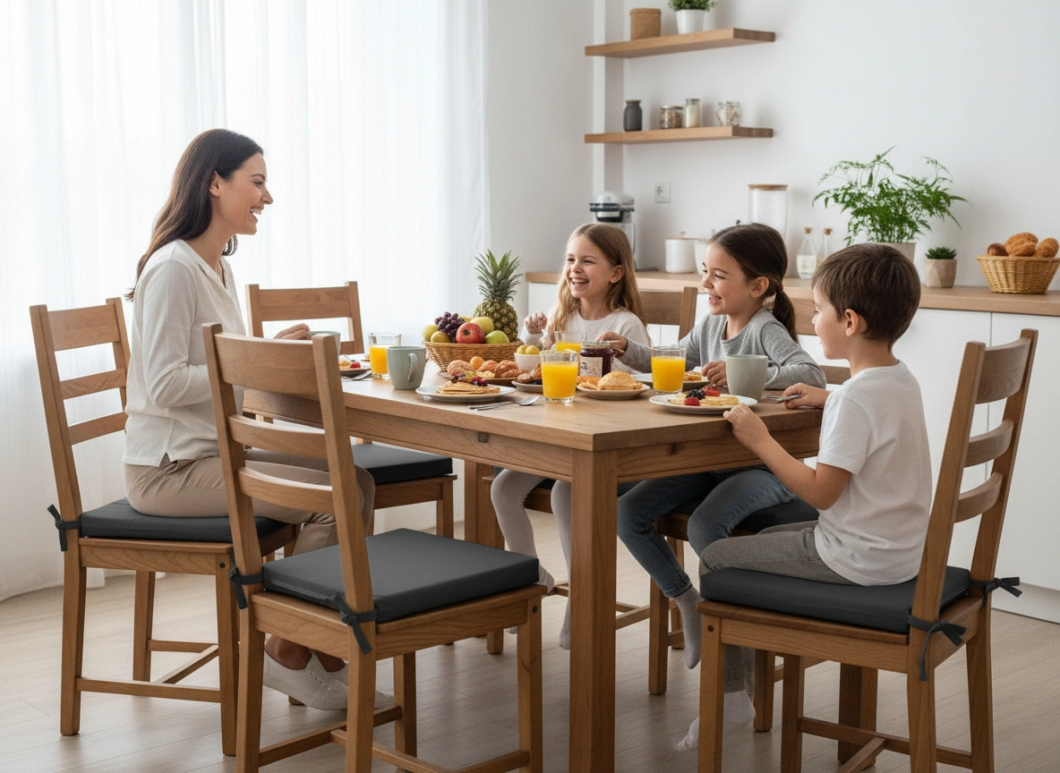 Měkké polyesterové vlákno zajistí příjemné sezení u jídla i při práci. Ideální pro každodenní použití.