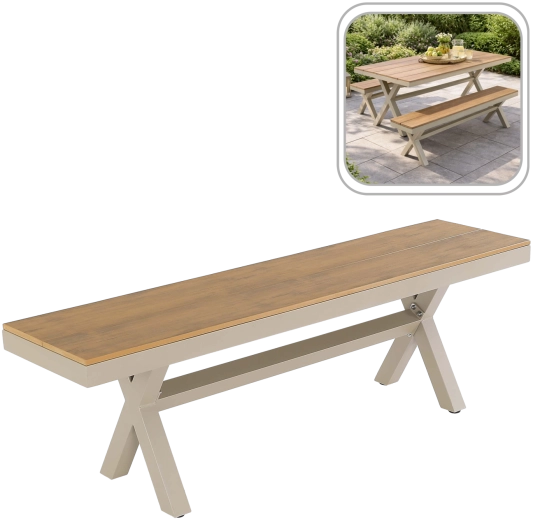 Vychutnejte si pohodlí a styl s lavicí, která odolá dešti i slunci. Robustní hliníková konstrukce s práškovým lakem je odolná proti korozi a mechanickému opotřebení, zatímco sedák z dřevoplastu nabízí vzhled přírodního dřeva bez nutnosti pravidelné renovace. Nosnost až 200 kg zajišťuje bezpečné a komfortní používání.