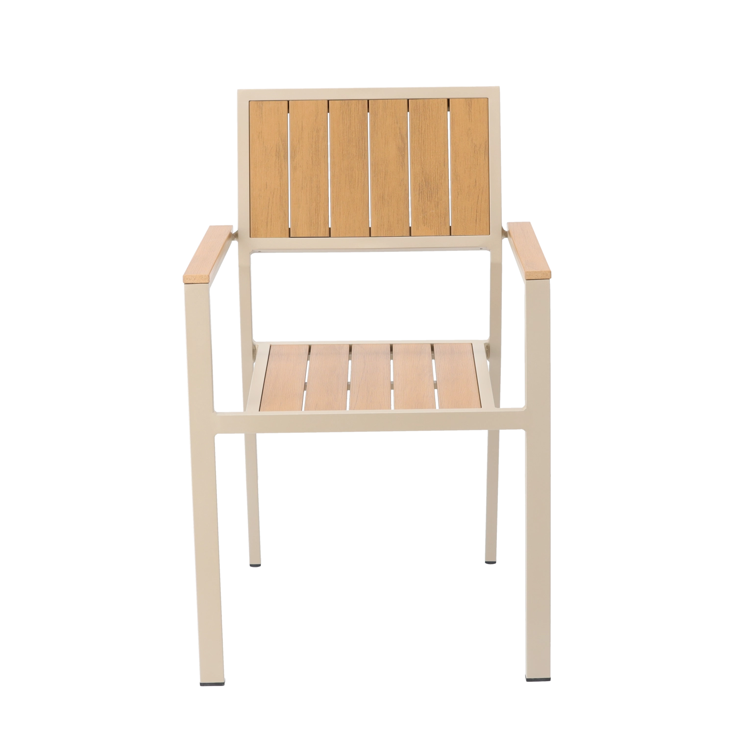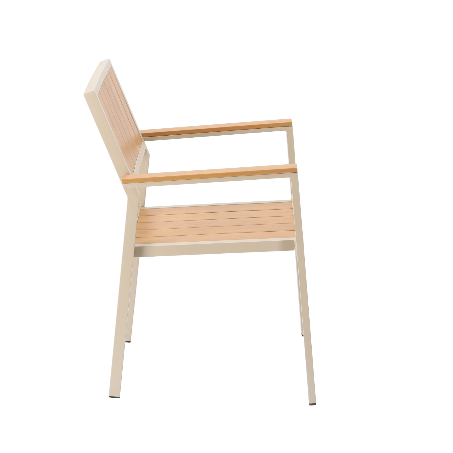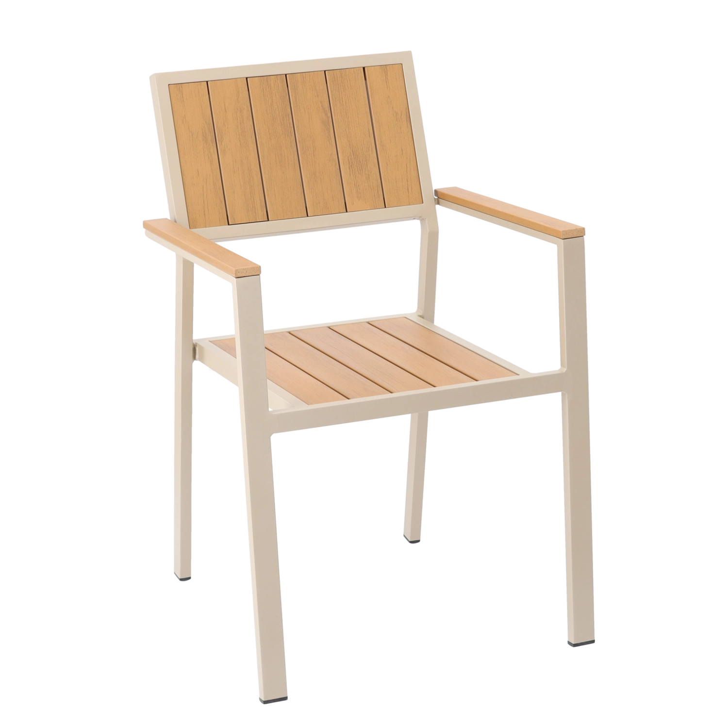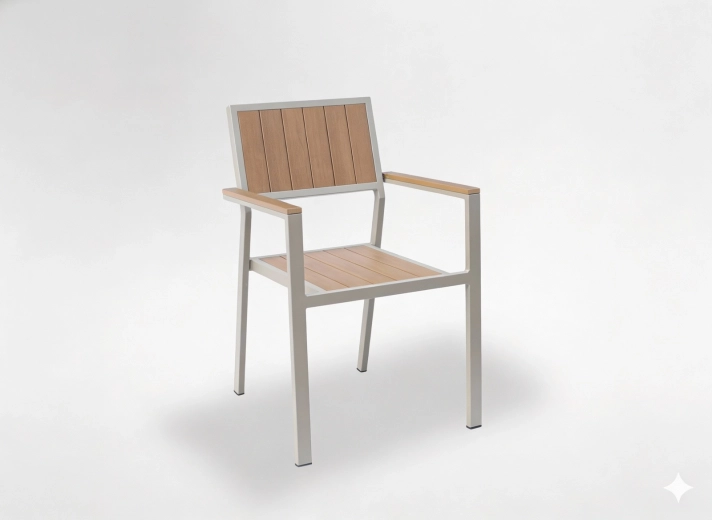 Stylová hliníková zahradní židle v béžovém provedení je ideální volbou pro venkovní posezení. Práškově lakovaný rám odolává vlhkosti i slunci, zatímco lamely s dřevodekorem dodají přírodní vzhled bez nutnosti pravidelné údržby. Díky promyšlené konstrukci s područkami nabízí židle komfort při každodenním používání.