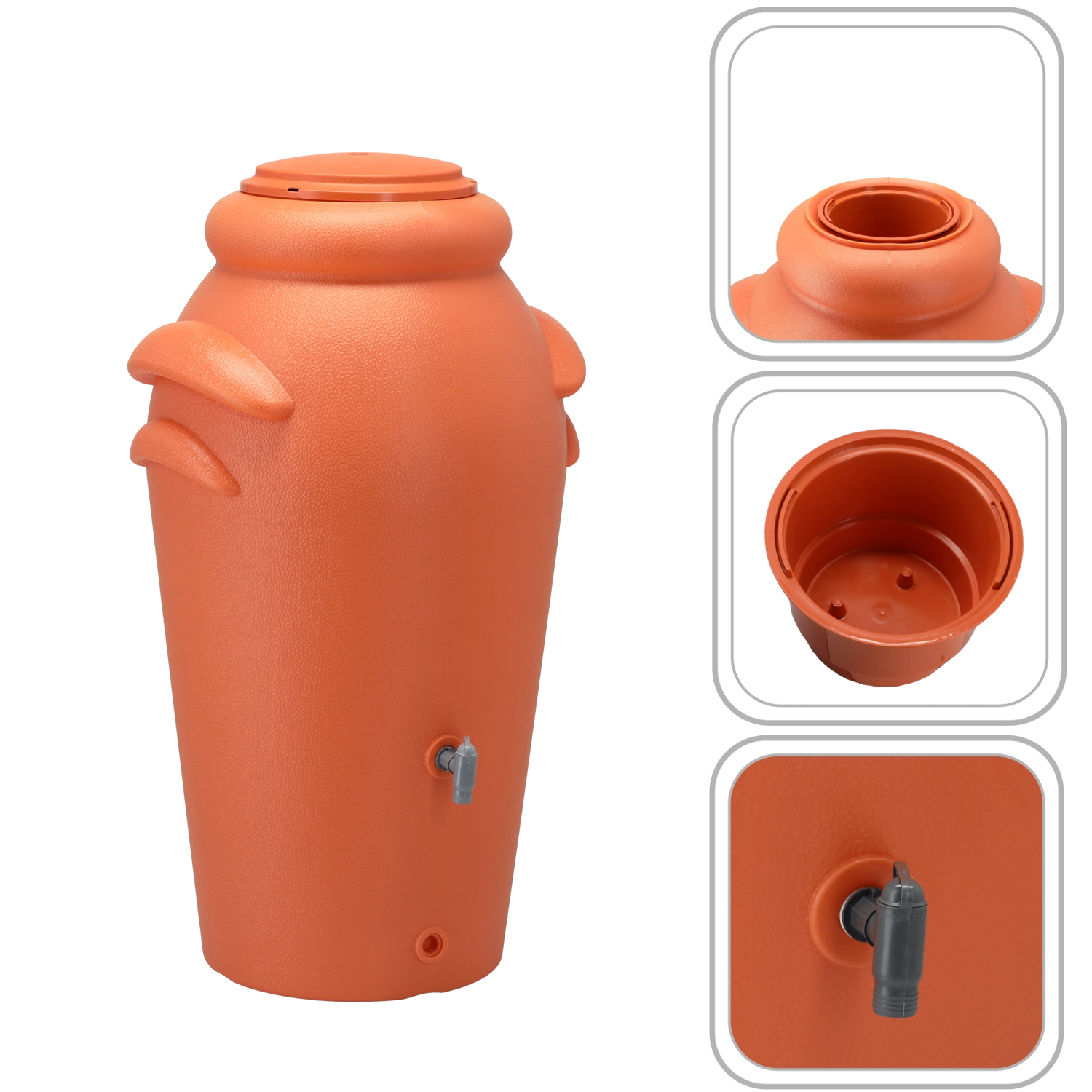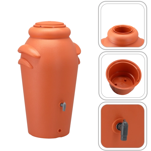Snadná obsluha je zajištěna horním otvorem s víkem pro pohodlné napouštění a spodním závitovým otvorem pro připojení kohoutku či zahradní hadice. Využitím dešťové vody při zalévání rostlin ušetříte náklady a podpoříte udržitelnou péči o zahradu.