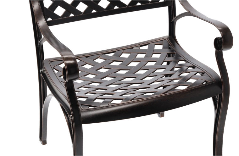 Díky lehkému, ale pevnému hliníku se židle snadno přenáší a zároveň poskytuje jistou oporu a komfort při sezení. Nadčasový design v antickém bronzu se hodí jak k moderním, tak tradičním exteriérům a snadno jej sladíte se zahradním stolem pro vytvoření jednotné sestavy.