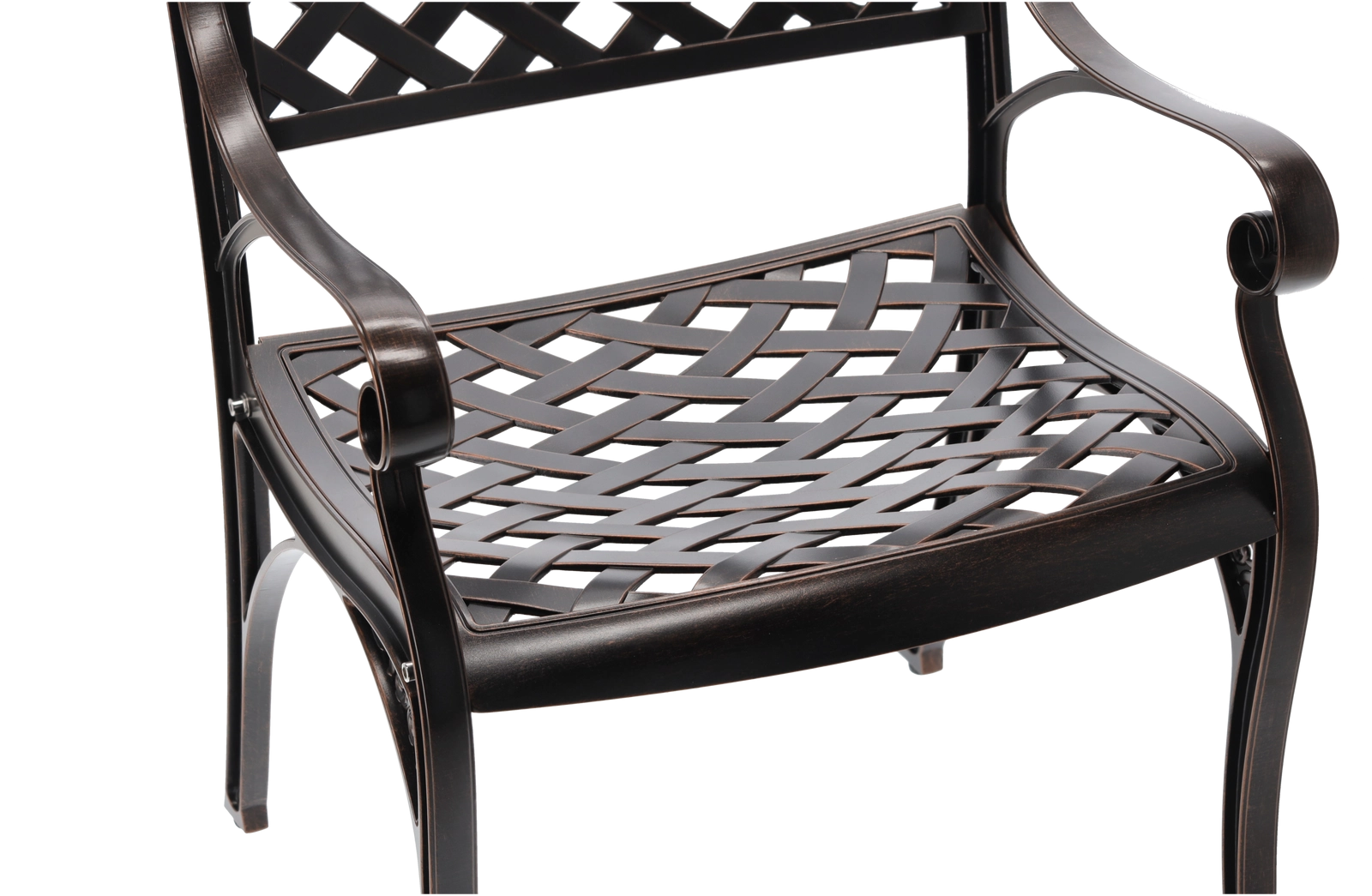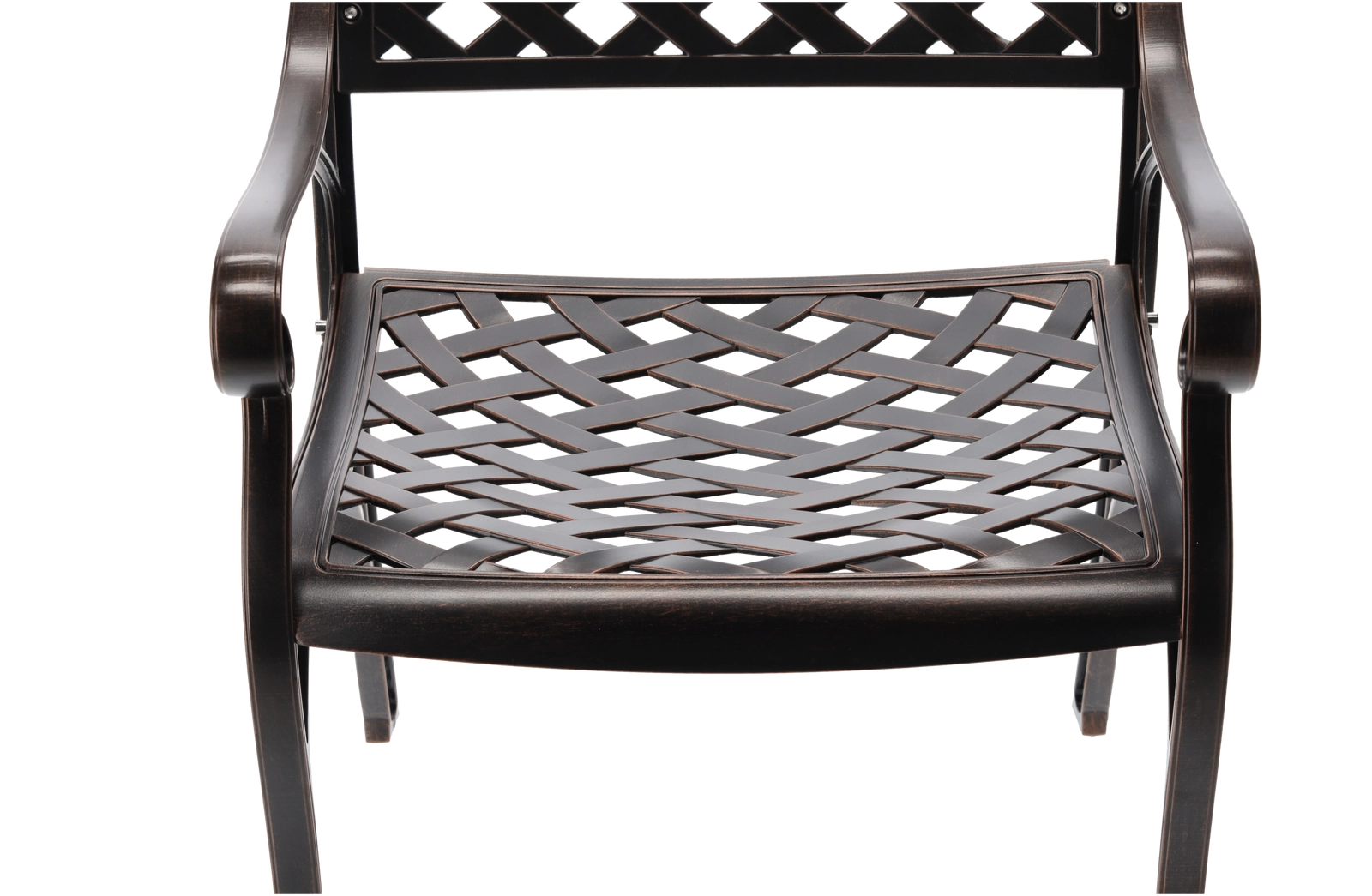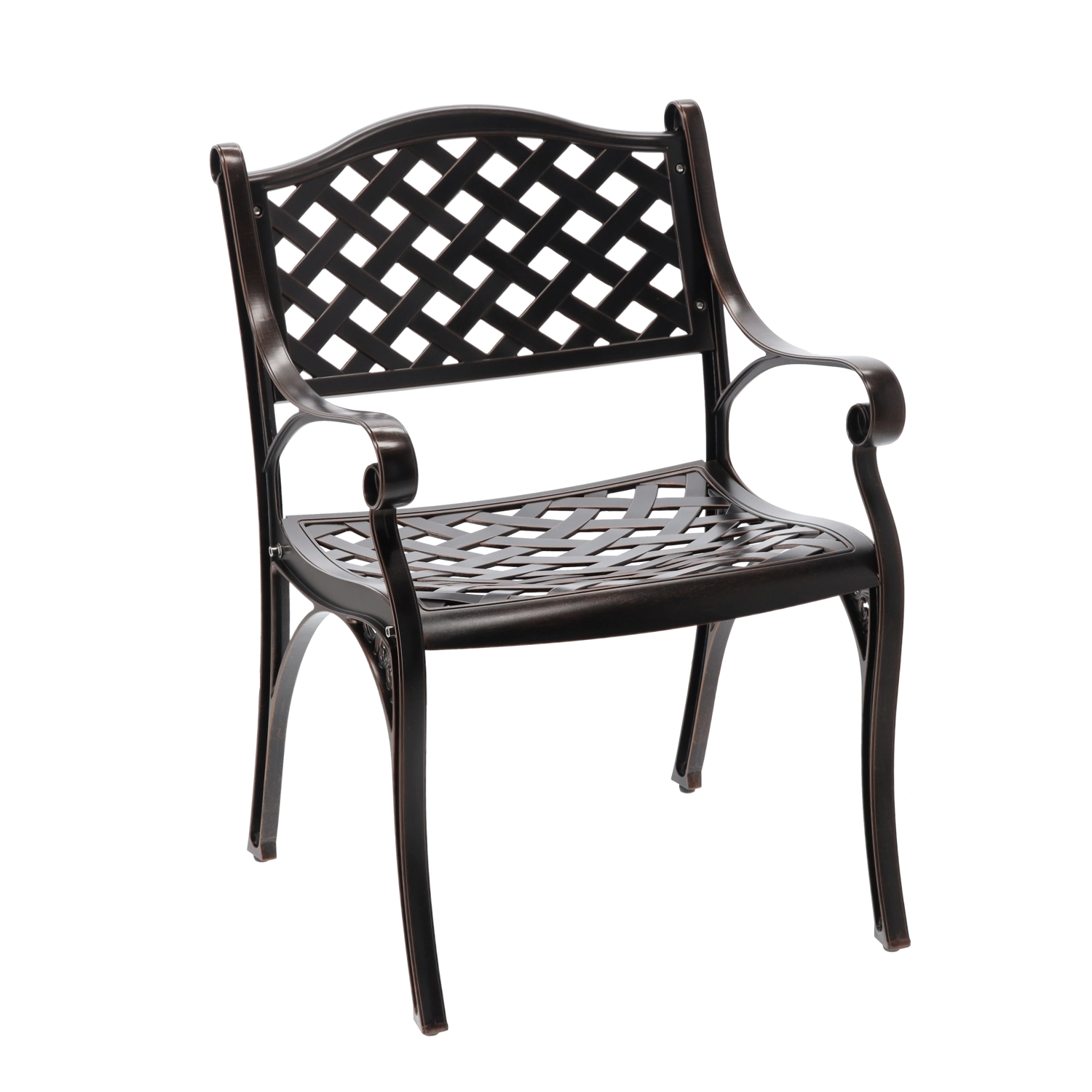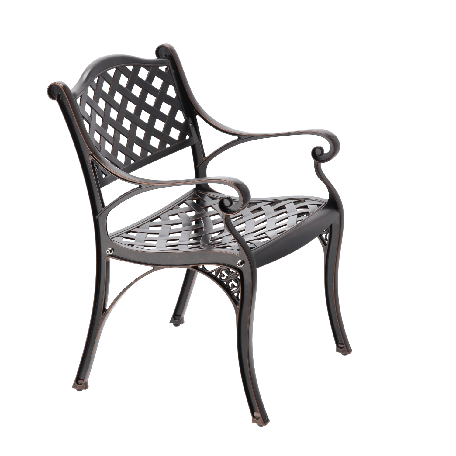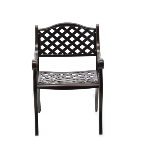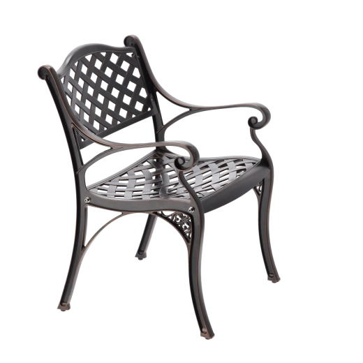 Elegantní zahradní židle MONDRICH v odstínu antické bronzové kombinuje klasický vzhled s moderní odolností. Je vyrobena z plných hliníkových odlitků a opatřena práškovým lakem pro ochranu proti povětrnosti. Díky nízké hmotnosti, stabilní konstrukci a pohodlným područkám je ideální na terasu, balkon, do zahrady i komerčních prostor.