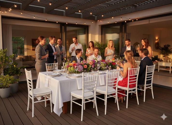 Lehká, snadno přenositelná a stabilní – ideální řešení pro pergoly, terasy i zahradní oslavy.