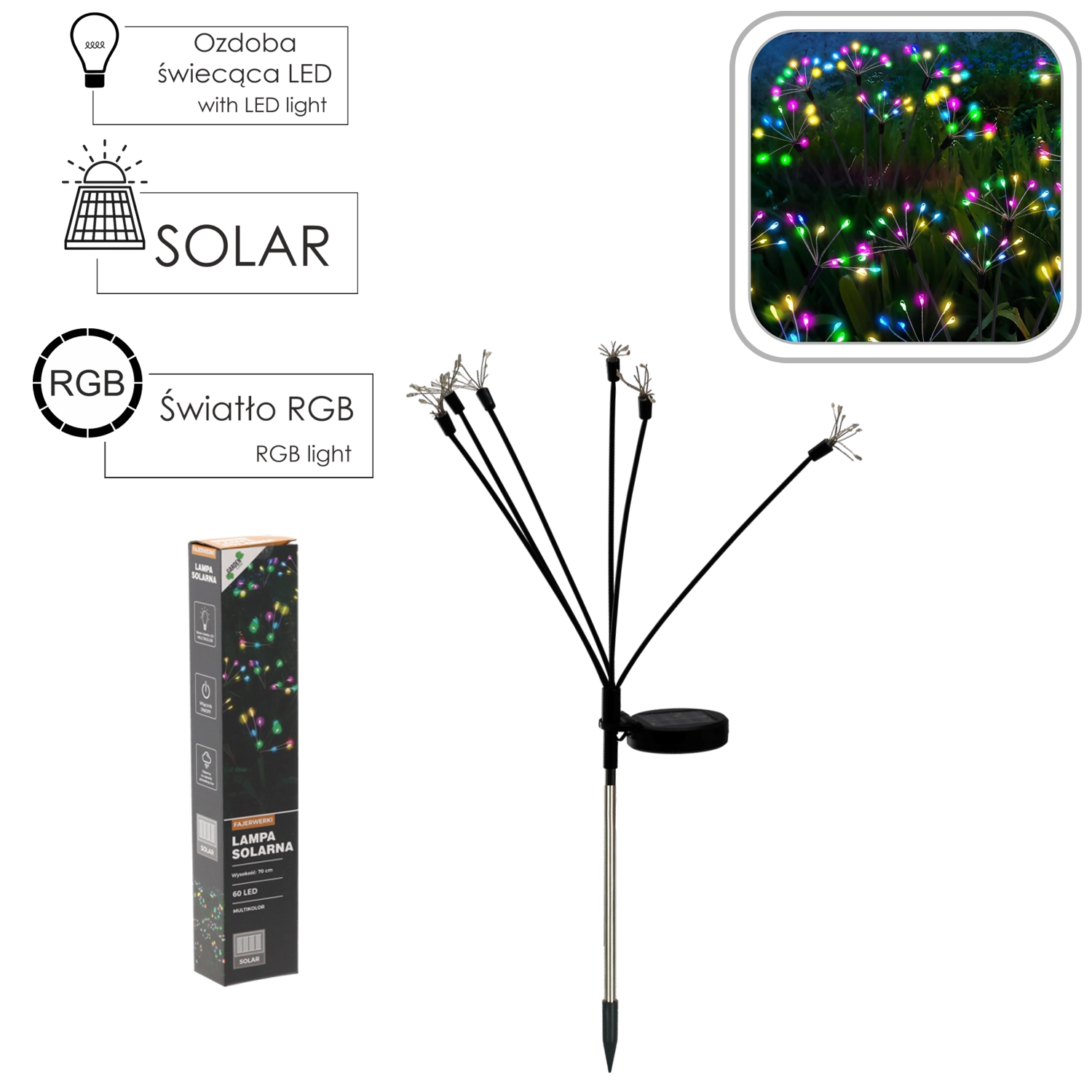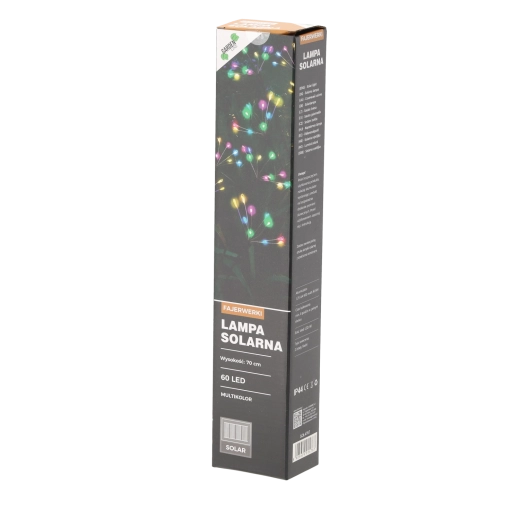 Tato dekorativní solární lampa s multibarevnými LED diodami vytváří působivý efekt ohňostroje, který dodá vašemu exteriéru magickou atmosféru. Díky solárnímu napájení je bezdrátová, úsporná a nevyžaduje žádnou složitou instalaci.