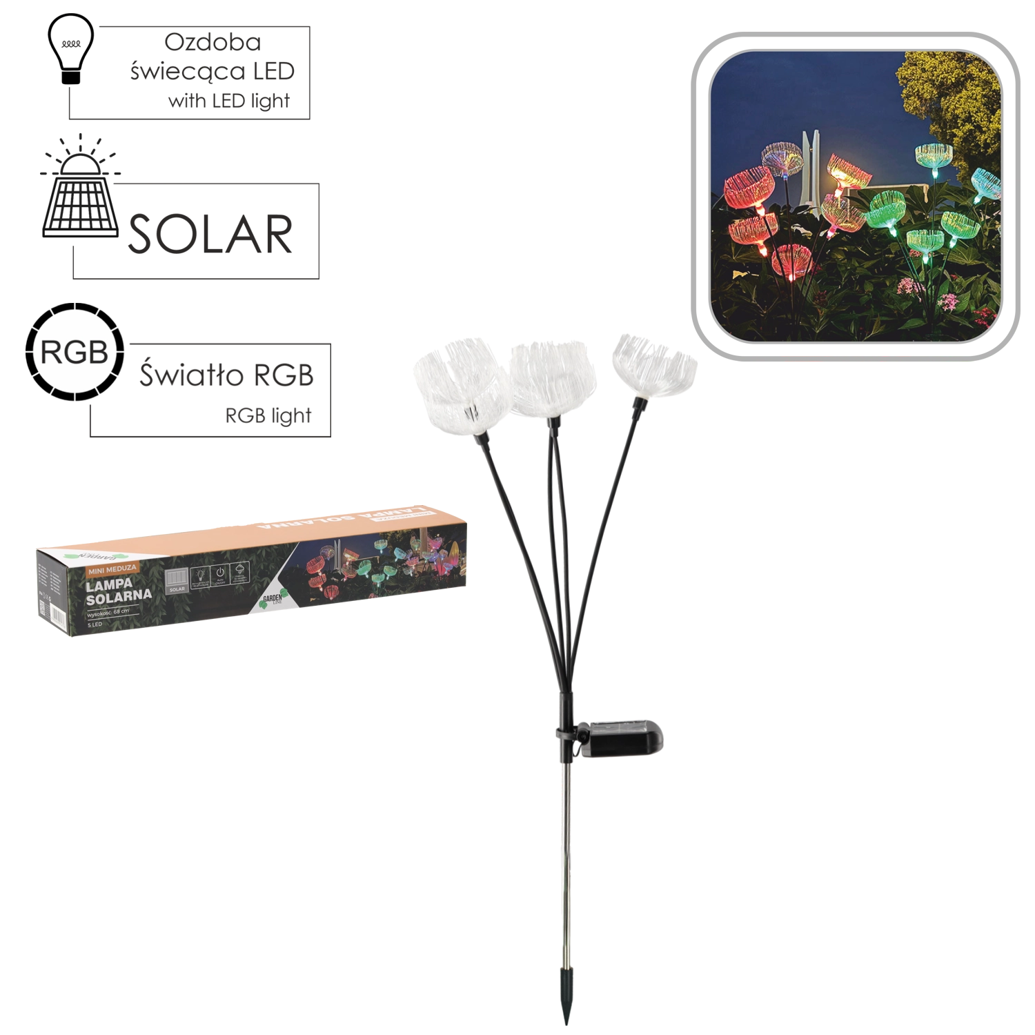 Vylaďte atmosféru své zahrady, terasy či chodníčků originální solární lampou Medúza mini. Kombinace 5 LED diod se změnou barev a výšky 68 cm vytváří působivý světelný efekt, který zaujme ve dne i v noci. Díky krytí IP44 je lampa vhodná pro celoroční venkovní použití.