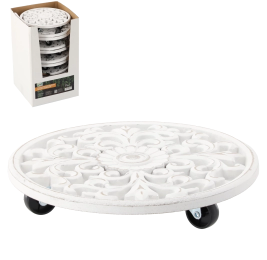 Tato bílá dřevěná podložka pod květináč je skvělou volbou pro moderní i klasické interiéry. Minimalistický vzhled snadno sladíte s různými styly zařízení, zatímco přírodní dřevo zajišťuje stabilitu a dlouhou životnost.