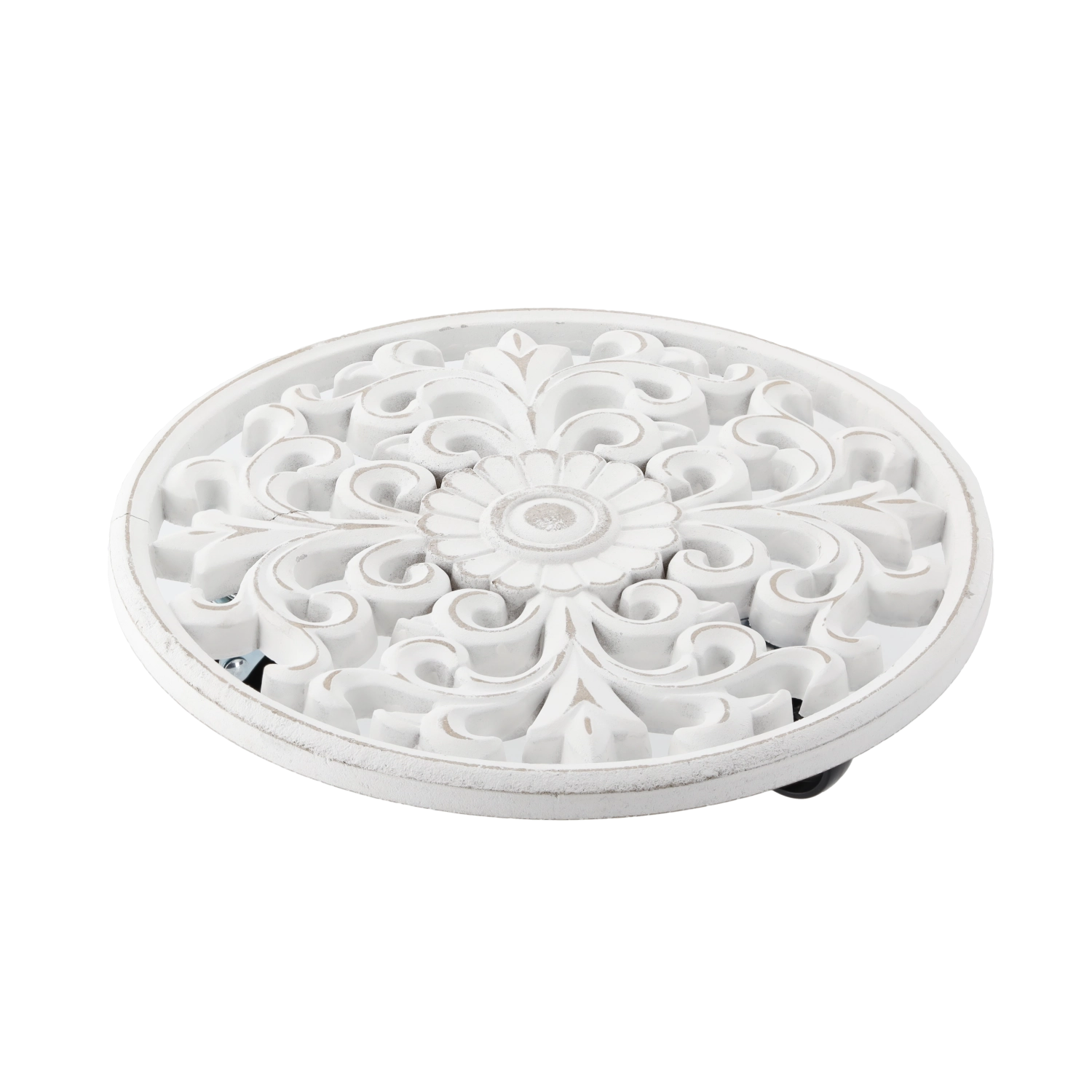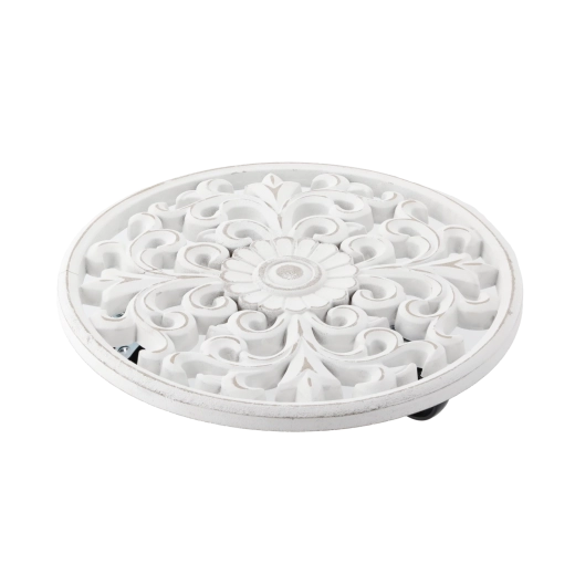 Kulatá bílá dřevěná podložka pod květináč 29 cm